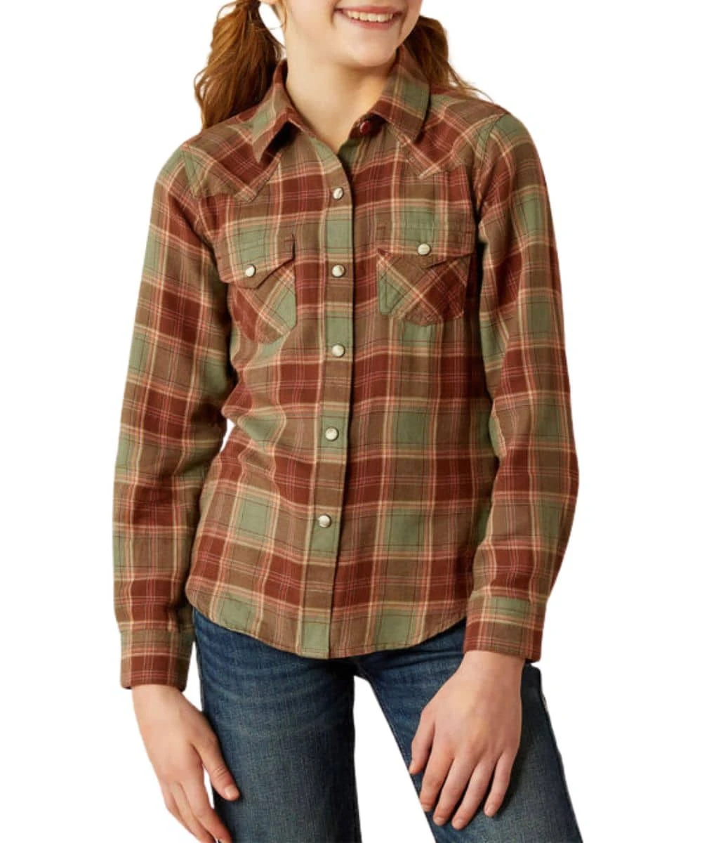 100% Cotton; Long Sleeves; Spread Collar; Snap Front Placket And Cuffs; Single Point Front Yokes; Single Point Snap Flap Chest Pockets; Oakwood Plaid Print; Color: Brown; Style #10054009