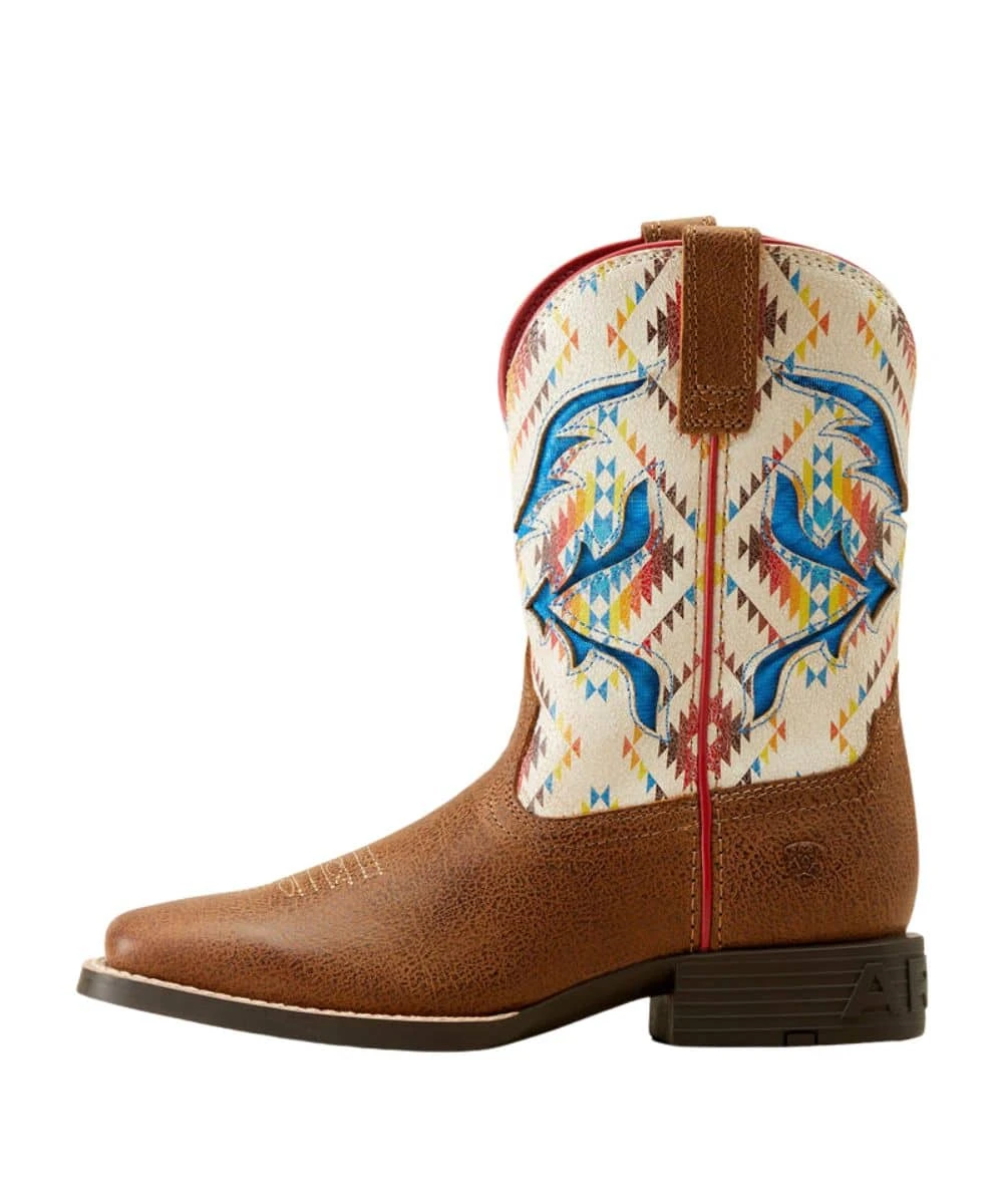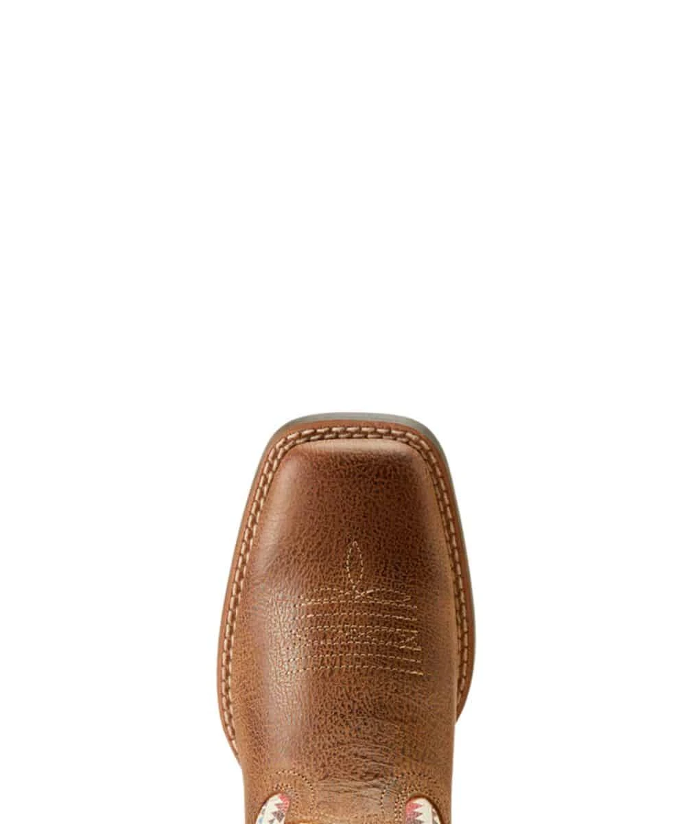 8.5″ Height; Full-Grain Leather; Southwestern Screen Printed Shaft With Blue Underlay; VentTEK Mesh Panels Keeps You Cool; Two-Row Stitch Pattern; Leather Pull Tabs For Easy On; Mesh Lining; 4LR Technology Provides Lightweight Support And Stability; Duratread Sole Provides Maximum Wear Resistance; 1.125″ Roper Heel; Wide Square Toe; Color: Toasty Tan/Bright Saddle Blanket; Style #10050882