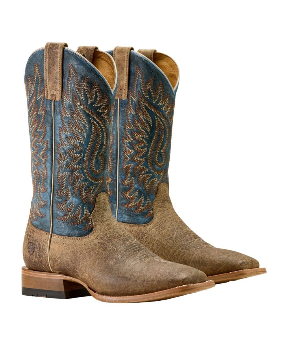 12″ Shaft; Hardy American Bison Leather Boot; Earth Brown Vamp; Blue Shaft With Contrast Stitching; Five-Row Stitch Pattern; Leather Pull Tabs For Easy On; Leather Lining; Removable Pro Performance Insole For Cushioning And Shock Absorption; TekStep Provides Toe-To-Heel Cushion For Comfort; Goodyear Welt Construction For Durability; ATS Technology Provides Ergonomic Support On Uneven Terrain; Proprietary Water Resistant Eleven-Iron, Vegetable Tanned Leather Outsole Provides Additional Flexibility And Durability; 1.5″ Horseman Heel; Wide Square Toe; Color: Brown/Blue; Style #10063779