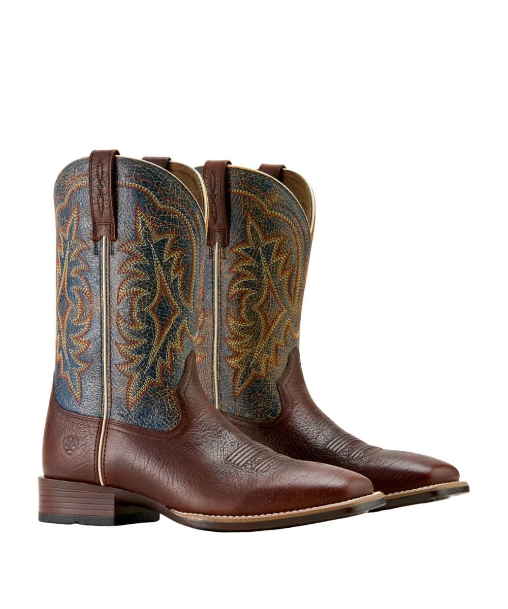 11″ Shaft; Premium Leather Boot; Textured Oak Vamp; Sunkissed Skies Blue Shaft With Contrast Stitching; Five-Row Stitch Pattern; Leather Pull Tabs For Easy On; Leather Lining; All Day Cushioning Insole; ATS Technology Provides Ergonomic Support On Uneven Terrain; Lightweight And Flexible Bantamweight Outsole For Durability; 1.5″ Horseman Heel; Wide Square Toe; Color: Brown/Blue; Style #10063990