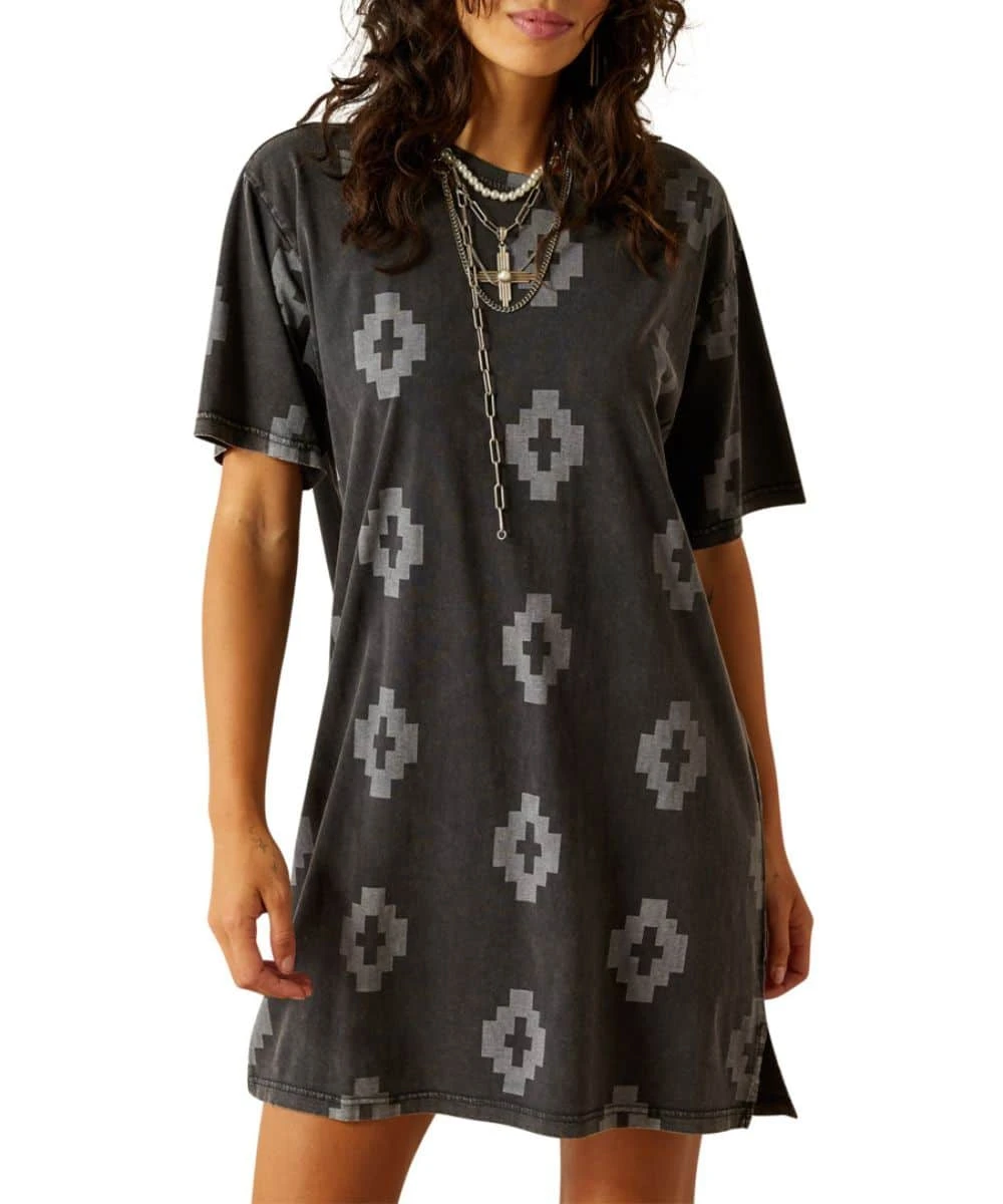 100% Cotton; Short Sleeves; Crewneck; Dropped Shoulders; Side Slit Detailing; Southwestern Print; Color: Grey; Style #10060380
