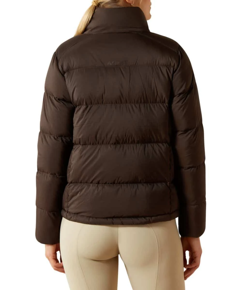 100% Nylon; Ultra Lightweight Warmth; Slightly Cropped; Long Sleeves; Mock Collar; Zip Closure; Zippered Hand Pockets; Oversized Box Quilting; Adjustable Cord Waist; Ethically-Sourced Down Insulation; PFC-Free EcoDry Finish Repels Water; Wind And Water Resistant Construction With A Breathable Design; Color: Java Brown; Style #10062379