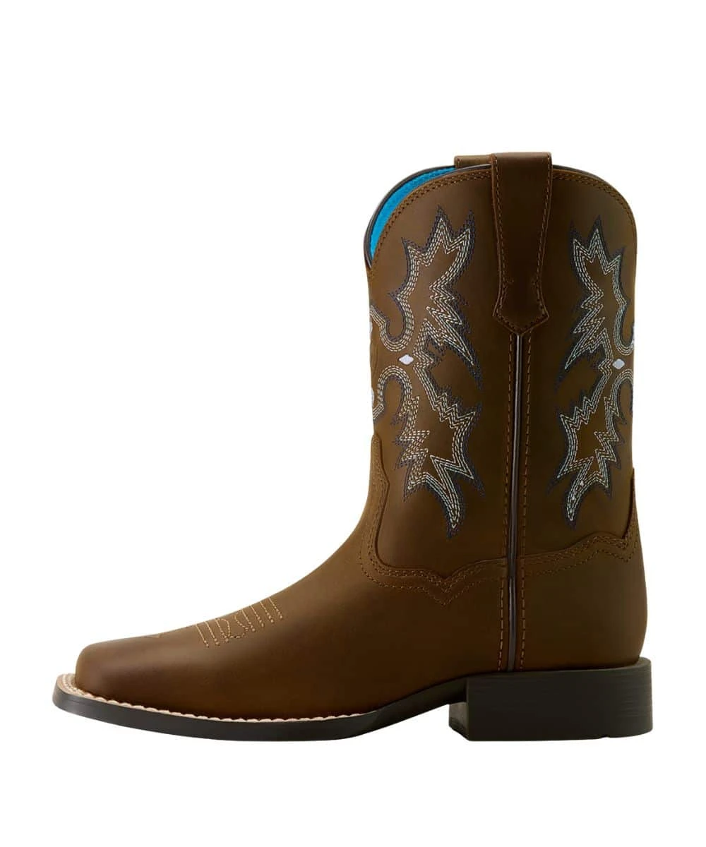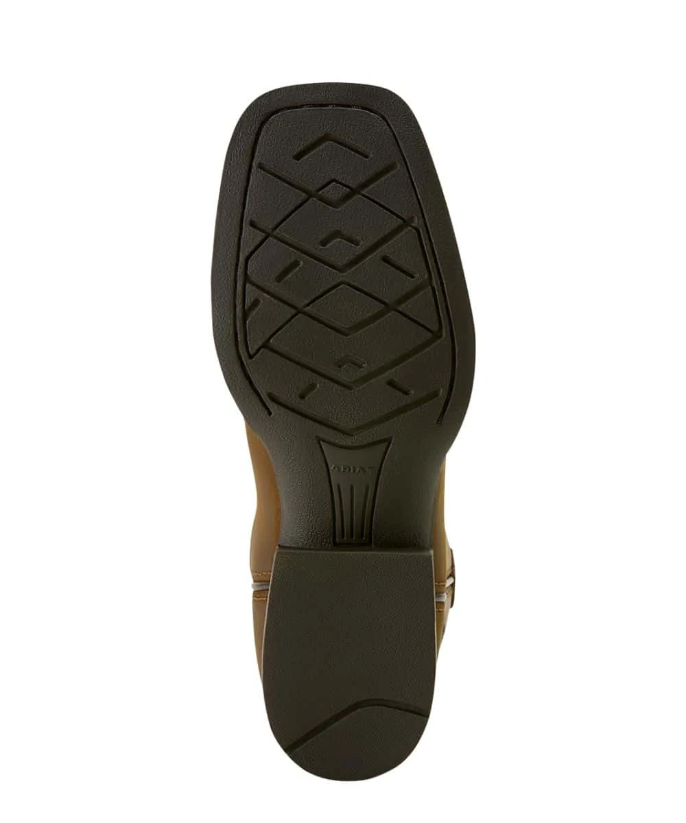 8″ Shaft; Premium Full-Grain Leather Boot; Contrast Stitched Shaft; Leather Pull Tabs For Easy On; Durable And Flexible TPR Outsole; 4LR Technology; 1.125″ Roper Heel; Wide Square Toe; Color: Distressed Brown; Style #10063834