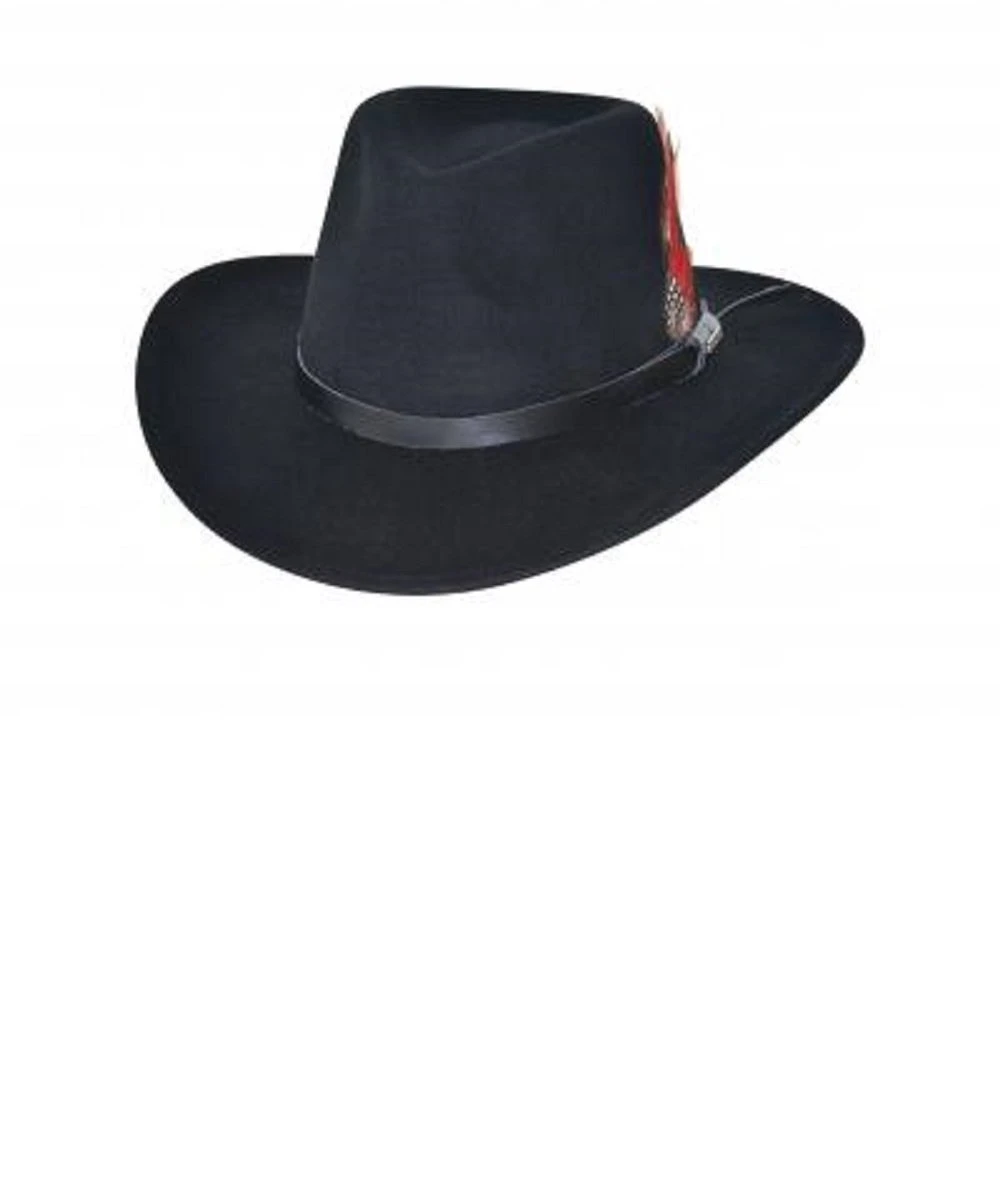 Premium Wool; Color: Black; 2 3/4″ Brim; Crushable And Can Be Rolled Up; Pinched Front/Outback Crown; Leather Hatband With Bullhide Hats Logo; Style #0773BL