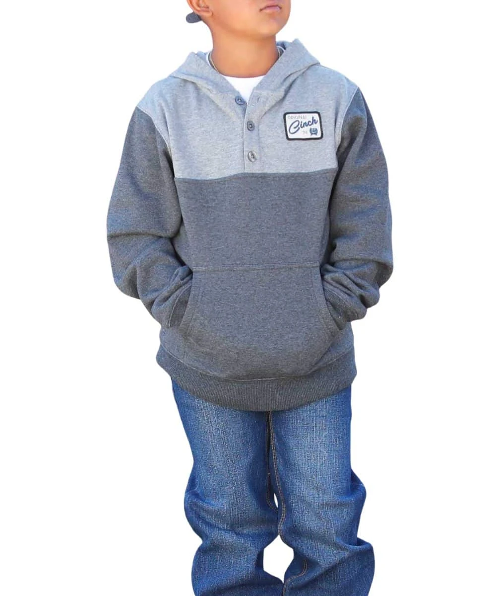 Cotton/Polyester Blend; Long Sleeves; Hooded Collar; 3-Button Placket; Woven Logo Patch On Chest; Color Blocked Design; Kangaroo Pocket; Rib Knit Trim; Color: Charcoal; Style #MWK7511001