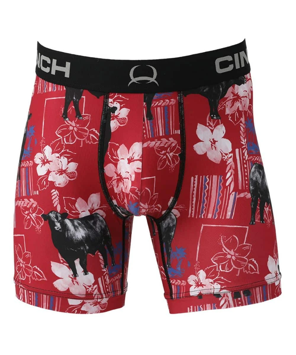 Polyester/Spandex Blend; 6″ Boxer Brief; Jacquard Logo Waistband; Contrast Topstitch; No Ride Leg Seams; Tag Free Design; Antimicrobial Treatment; Four Way Stretch; Moisture Wicking Fabric; Angus Floral Print; Color: Red; Style #MXY6002033