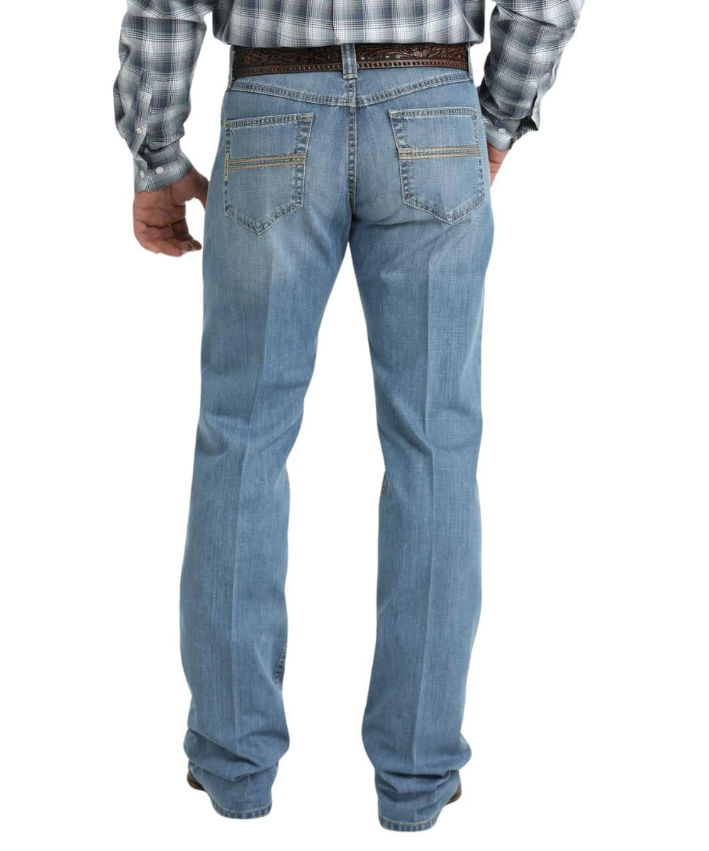10.9 oz. Performance Stretch Denim; Relaxed Fit; Mid Rise; Zip Fly With Button Closure; Five Pocket Styling; Hand Sanding, Whiskers, Chevrons, And Tacking Details; Tonal Embroidered Back Pockets; Boot Cut Leg; Light Stonewash; Color: Light Stone; Style #MB71934022