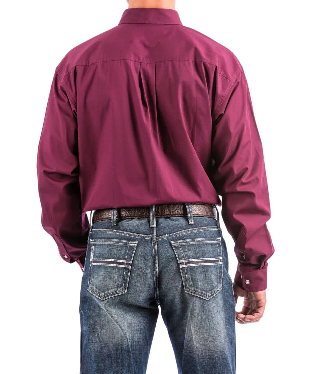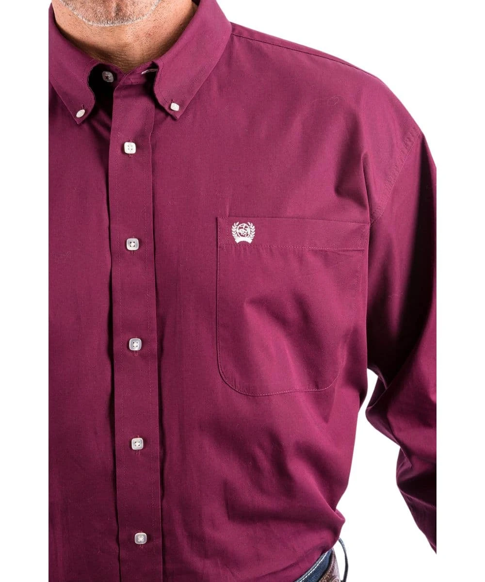 100% Cotton; Classic Fit; Long Sleeves; Button Down Collar, Placket, And Cuffs; Necktape; Square White Buttons; Single Open Chest Pocket With Embroidered Cinch Logo; Fuller Body With Longer Tail And Sleeves For Full Range Of Motion And Helps Keep Shirt Tucked In; Straight Back Yoke With Box Pleat; Color: Burgundy; Style #MTW1104239