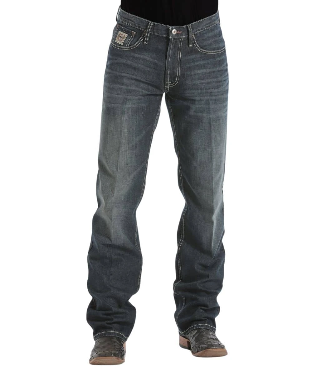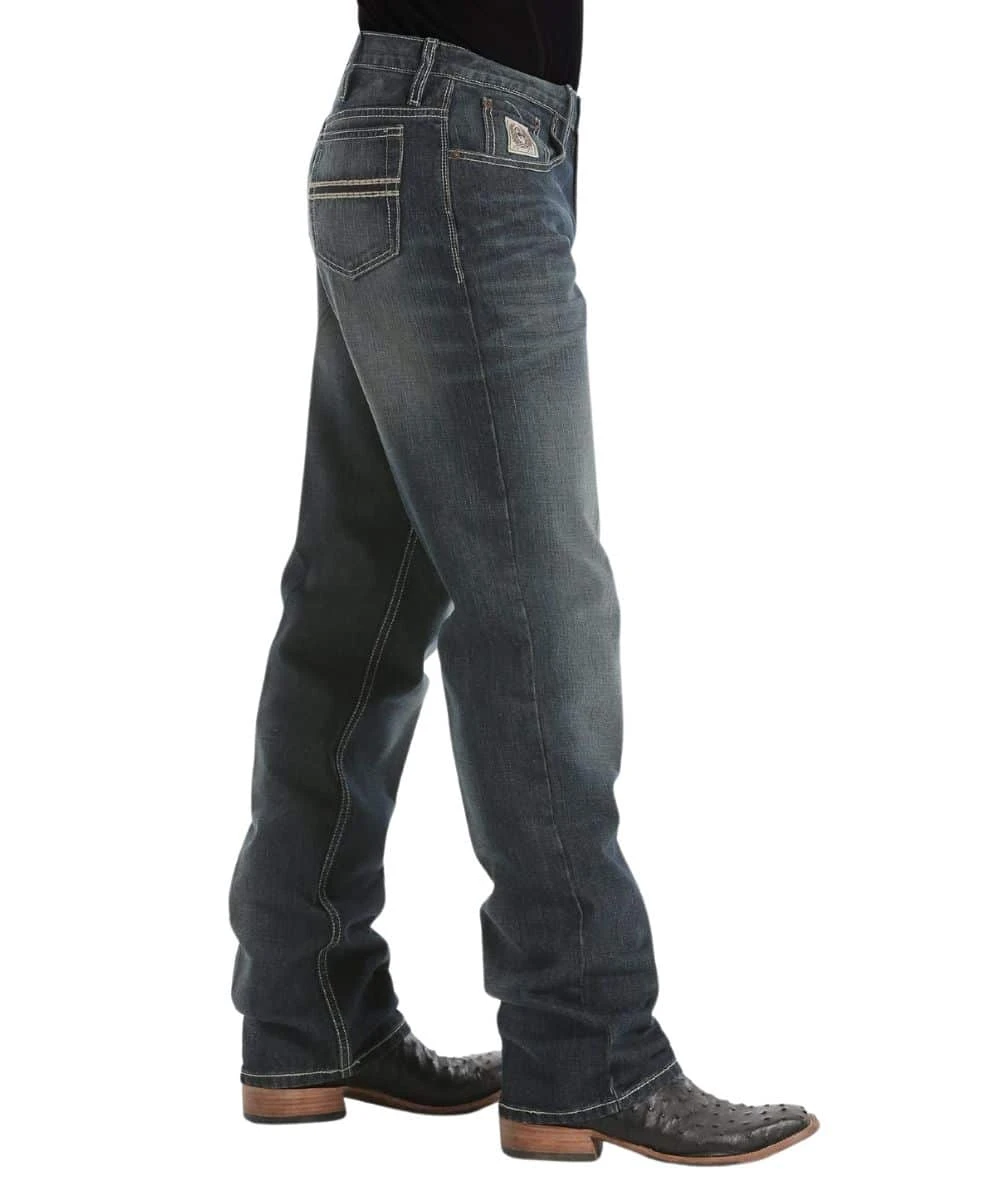 100% Cotton; 13.25 Oz. Rigid Denim; Relaxed Fit; Zip Fly With Button Closure; Whisker And Hand Sanding Details; Five Pocket Styling; Signature Stitched Back Pockets; Stackable Straight Leg; Color: Dark Stonewash; Style #MB92834019