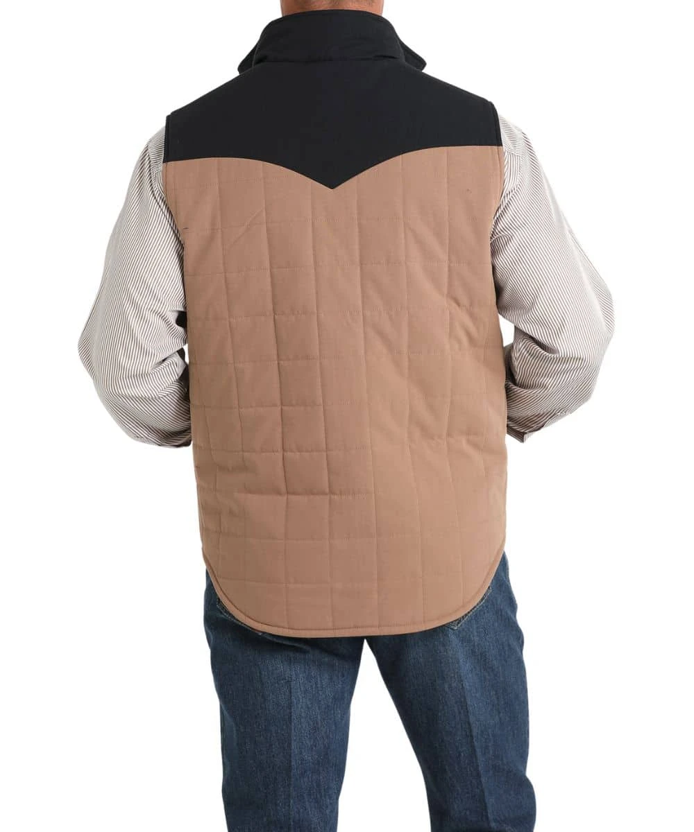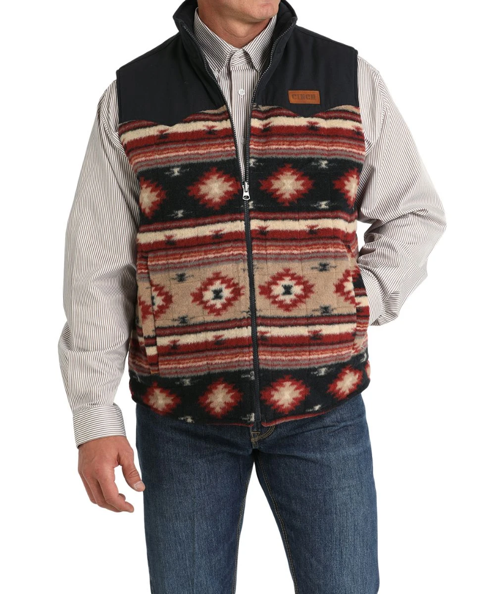 Polyester/Cotton Wax Coated Canvas And Polyester/Acrylic Twill On Reverse; Sleeveless Vest; Standing Collar; Full Zip Closure; Leather Logo Patch On Chest; Single Point Western Yokes; Contrasting Navy Yoke; Zipper Hand Pockets; Durable Water Resistant (DWR) Finish; Khaki On One Side, Reverse Side Is Southwestern Print; Color: Khaki/Navy; Style #MWV1576004