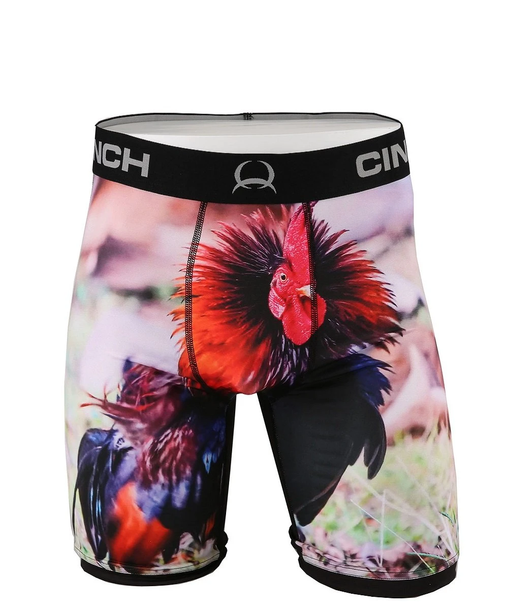 9″ Boxer; No Ride Leg Seams; Tag Free Design; Jacquard Waistband Antimicrobial Treatment; Lightweight; Four Way Stretch; Moisture Wicking Fabric; Features Rooster Image; Style #MXY6010005