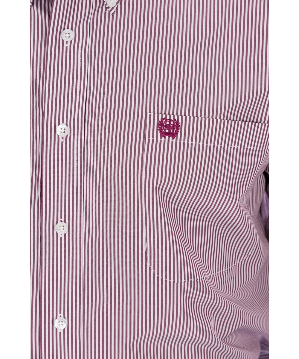 Tencel/Cotton/Polyester Blend; Yarn Dyed Stripes; Long Sleeves; Button Down Collar, Placket, And Cuffs; Necktape; White Logo Buttons; Single Open Chest Pocket With Logo Embroidery; Straight Back Yoke With Box Pleat; Tencel Fabrics Are Soft, Strong, Cooler Than Cotton And Help Wick Moisture; Color: Burgundy With White Stripes; Style #MTW1104730