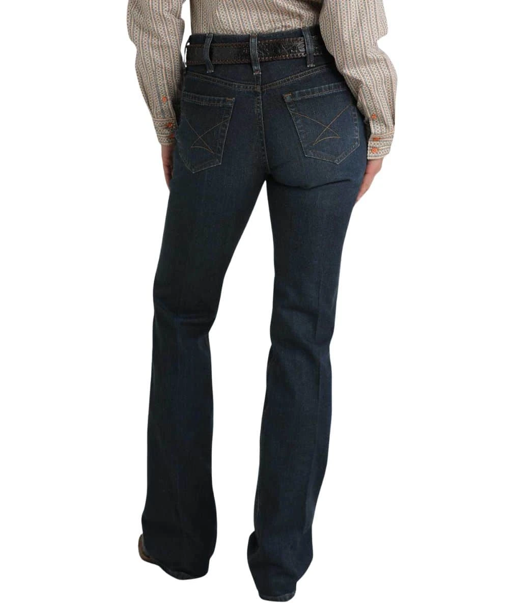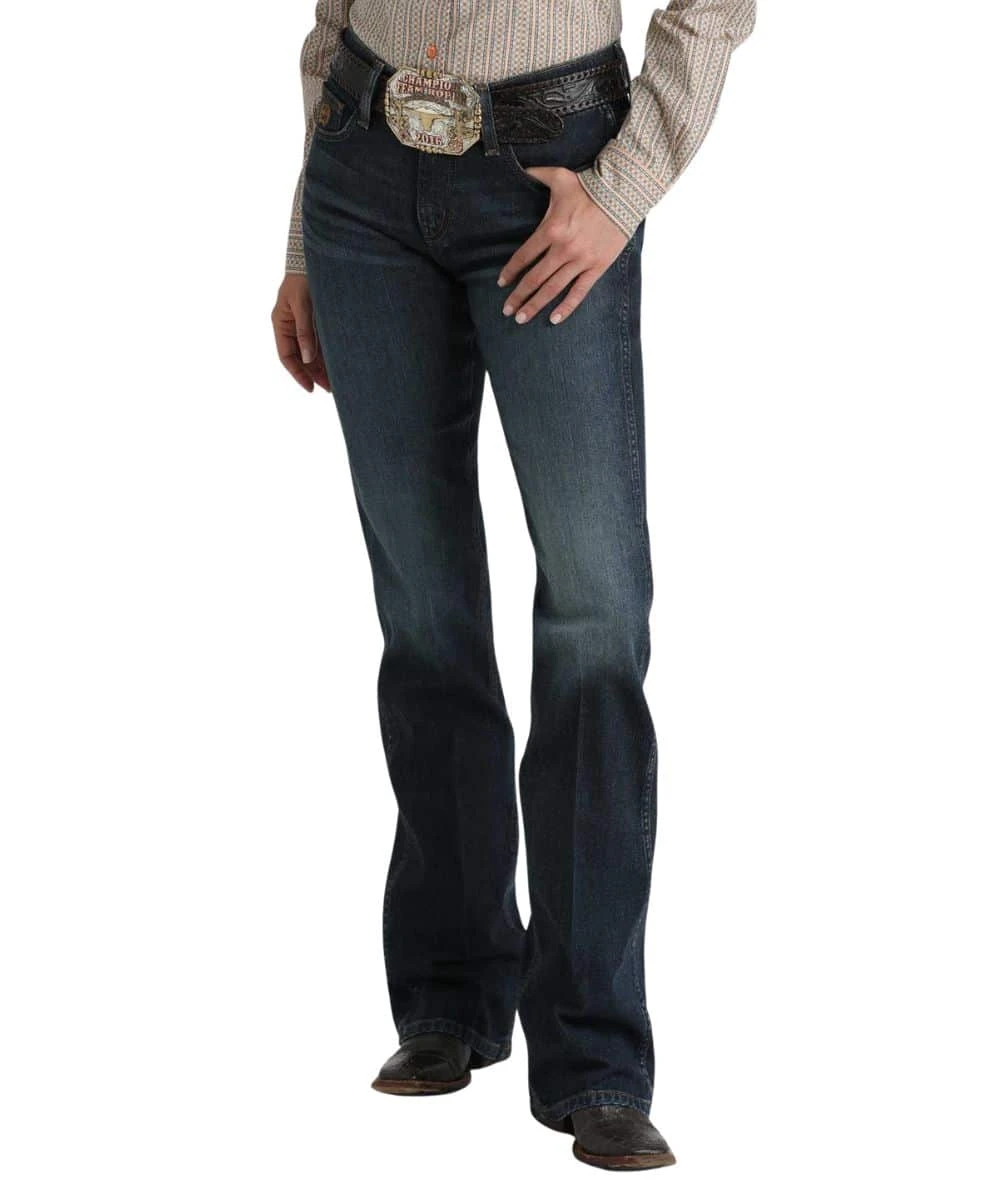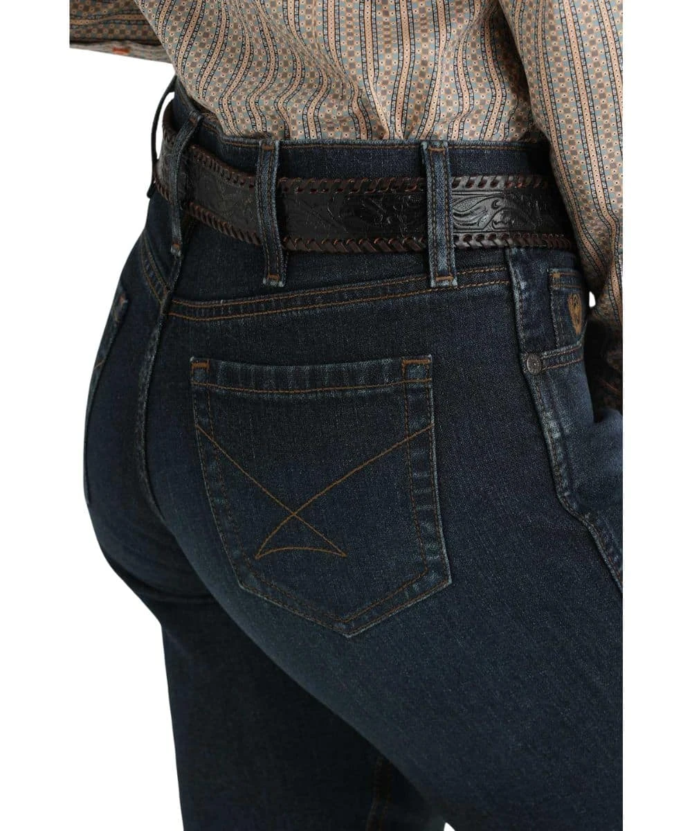 10.6 oz Super-Stretch Performance Denim; Slim Fit; Moderate Rise (7 3/4″ Front Rise And 13 1/2″ Back Rise); Zip Fly With Button Closure; Five Pocket Styling; Tint, Hand Sanding, And Whisker Detailing; Felled Seaming; Contrast Stitched Back Pockets; Reinforced Belt Loops; Boot Cut Leg; Dark Stonewash; Color: Indigo; Style #MJ84654071