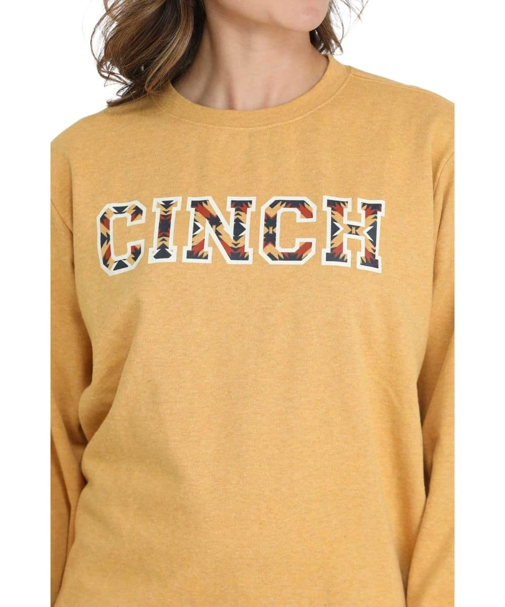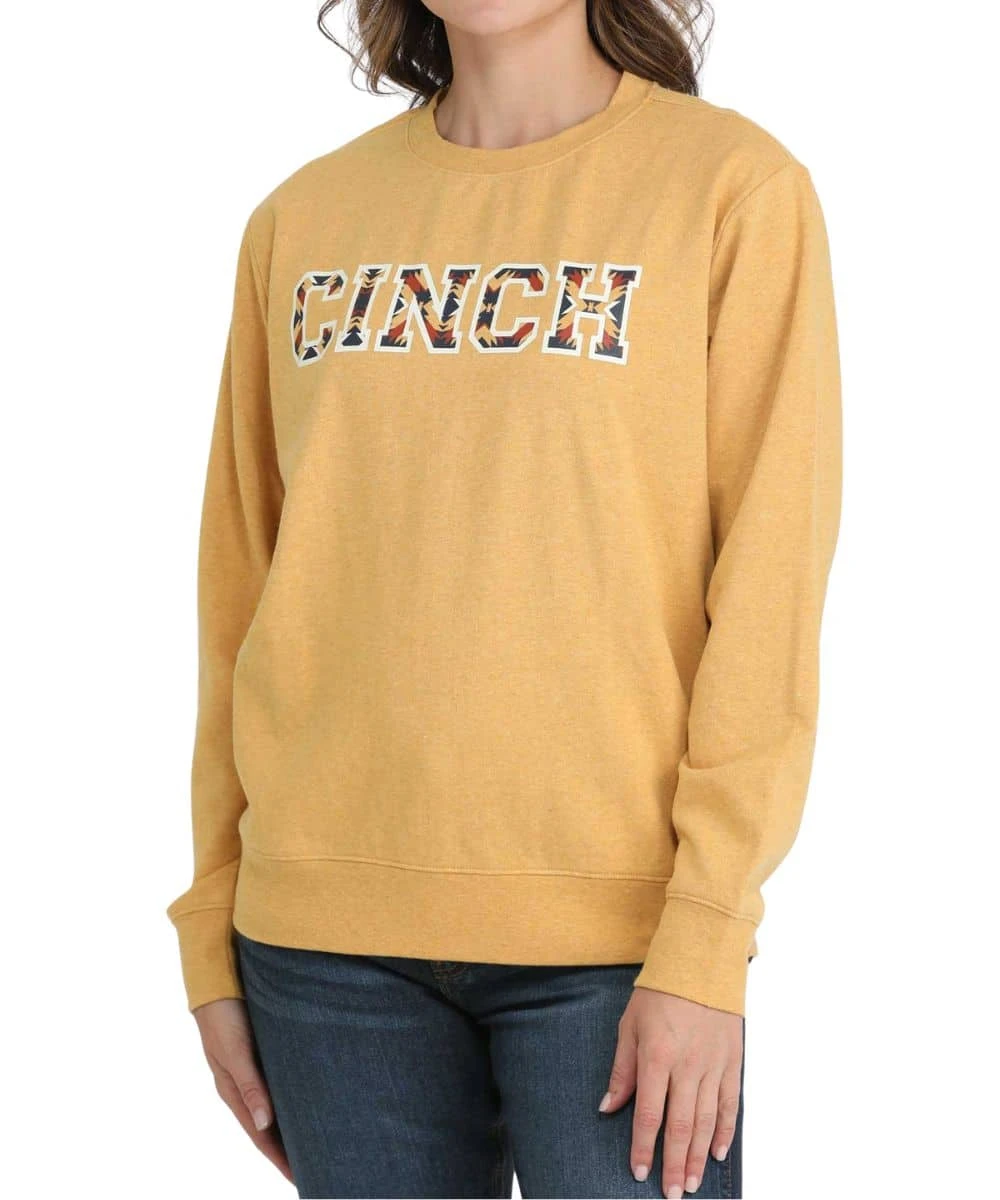 Cotton/Polyester Blend; Fleece Sweatshirt; Long Sleeves; Crew Neck; Front Logo Screen Print With Southwestern Fill; Color: Gold; Style #MAK7905006