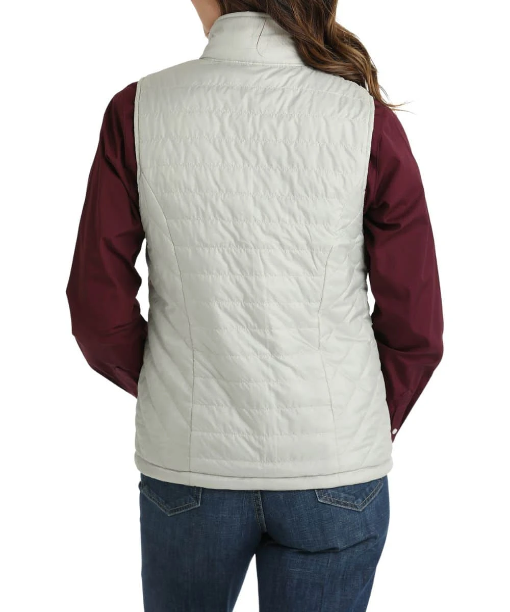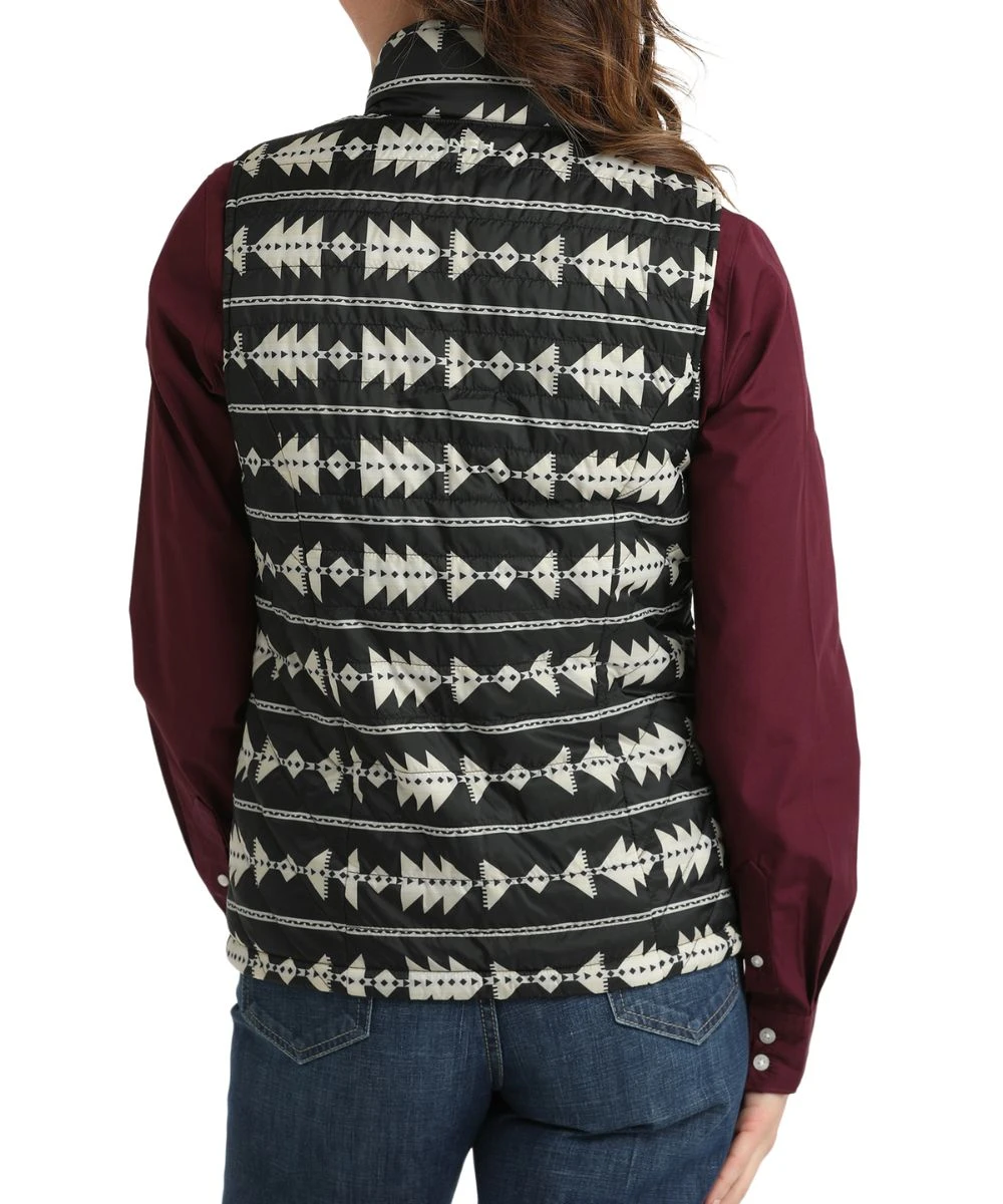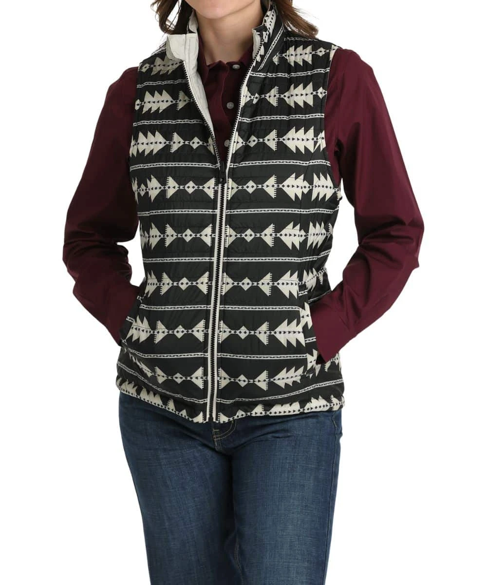 Printed And Solid Polyester; Reversible Quilted Vest; Sleeveless; Mock Collar; Full Zip Closure; Logo Screen Print; Hand Pockets; Color: Cream/Black; Style #MAV9907001