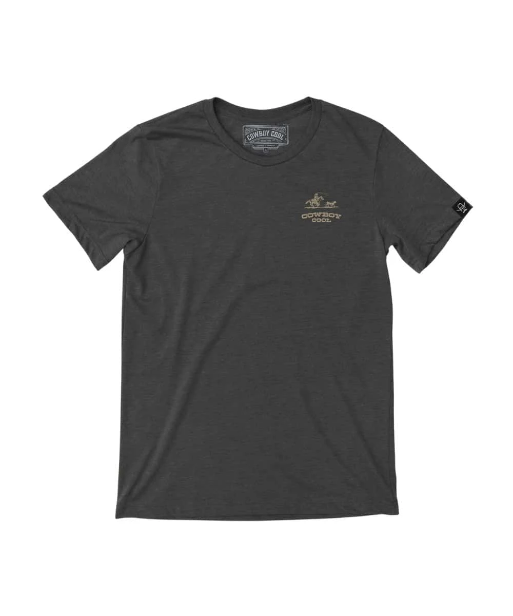 Short Sleeves; Crew Neck; Tagless Neck Label; Small Logo Screen Printed On Front Chest; Large Team Roping Graphic On Back With Logo Screen Print; Color: Heather Black; Style #T510