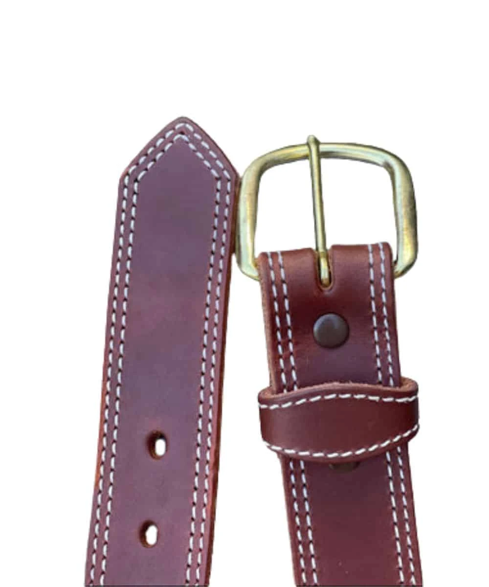 1.5″ Wide; Unsplit Natural Material; Slight Variations In Thickness; No Stretch Leather; Double White Stitching; Silver Buckle; Heavy Duty Work Belt; Color: Sedona Hot Dipped Brown; Made In USA; Style #8018-37