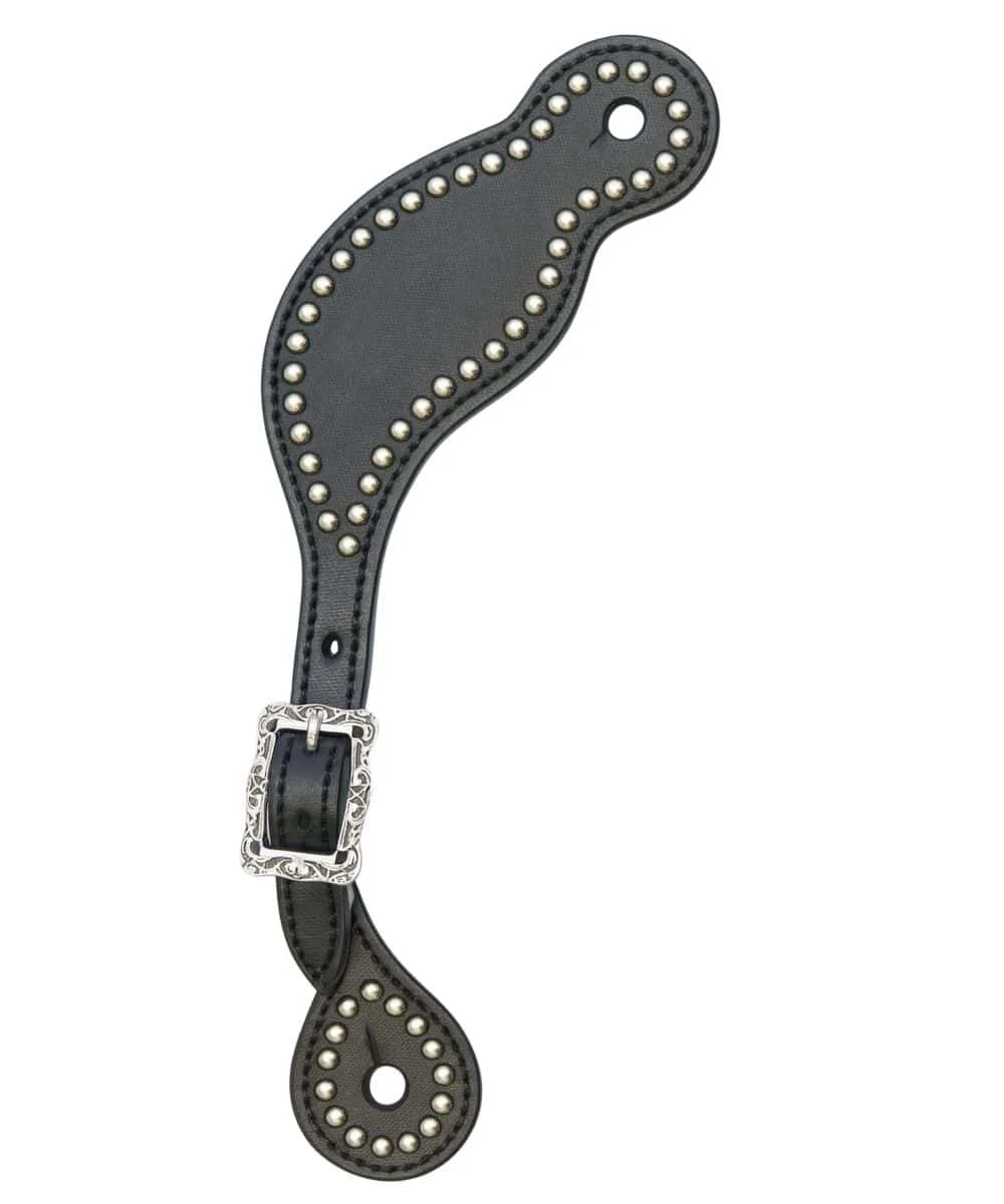 Bridle Leather; Teardrop Shape With Stainless Steel Spots; Stainless Steel Hardware; Horseshoe Brand; Sold As A Pair; Color: Black; Style #BLK-669