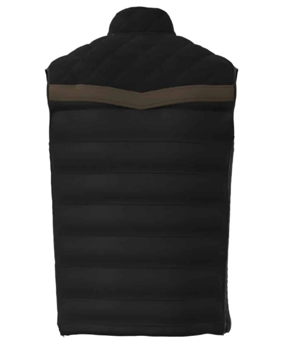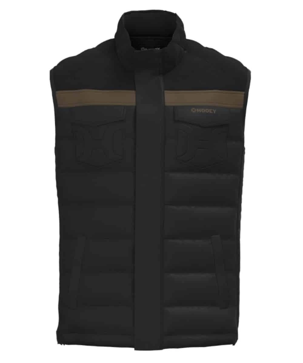 100% Polyester; Poly Filled; Sleeveless Vest; Mock Collar; Full Zip And Snap Front Placket; Functional Single Point Snap Flap Chest Pockets With Logo Stitching; Brown, Straight Color Blocked Front Yokes; Snap Hand Pockets; Brown Single Point Color Blocked Back Yoke; Wind Proof And Waterproof Blocking; Packable; Color: Black; Style #HV117BK