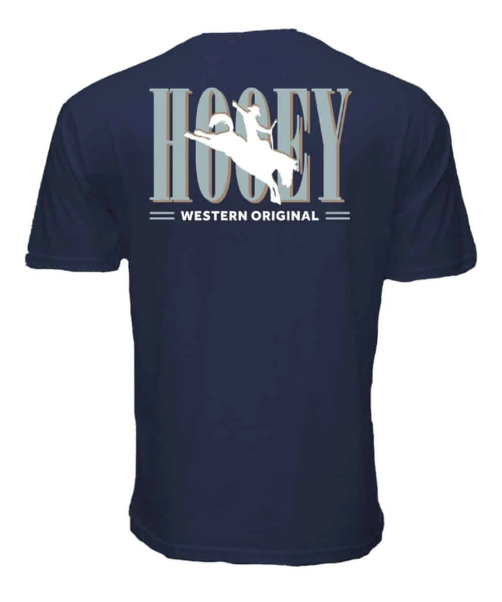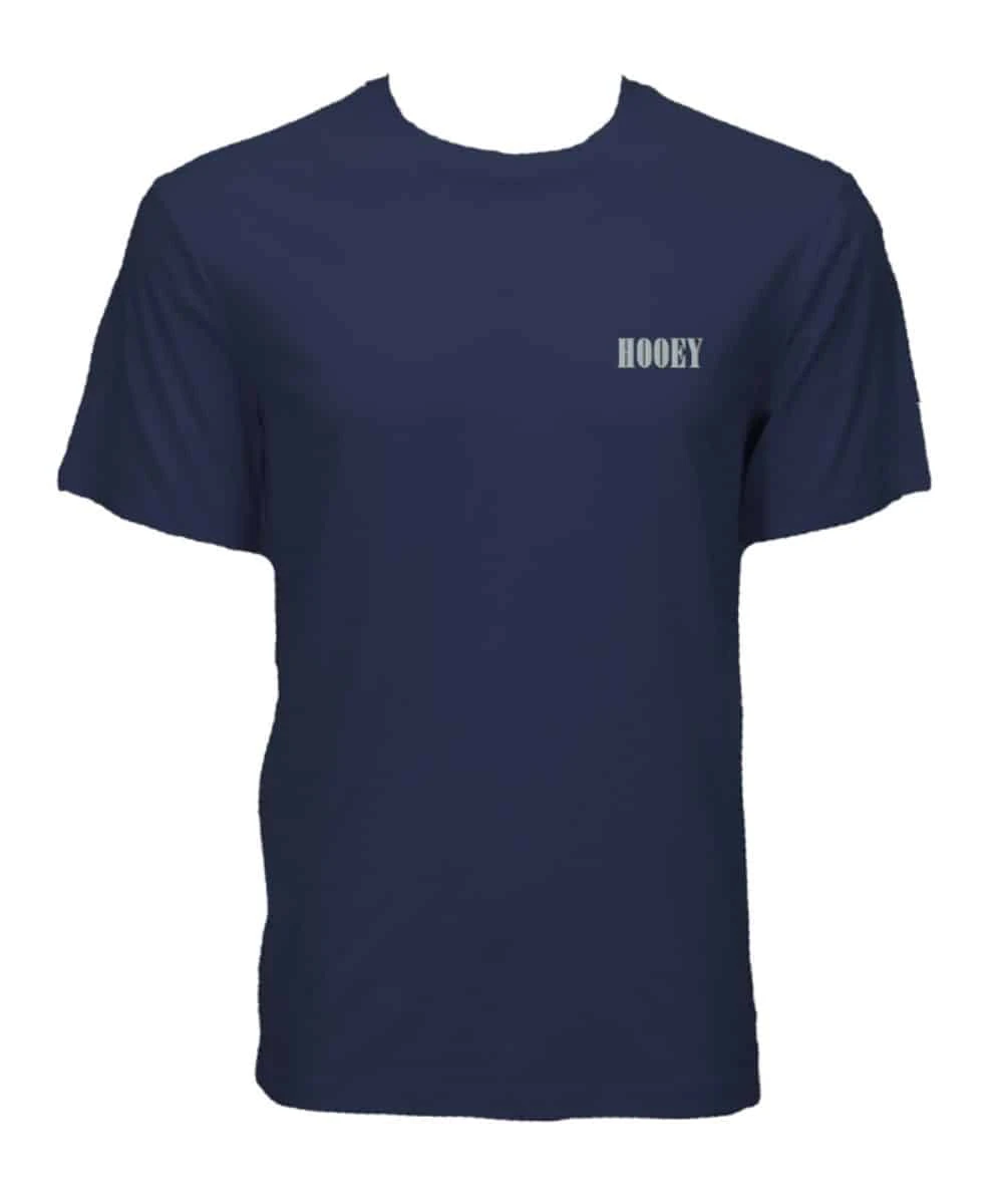 Cotton/Polyester Blend; Short Sleeves; Crew Neck; Small Hooey Logo Screen Printed On Chest; Large Light Blue/White Hooey Logo On Back; Color: Maritime Blue; Style #HT1911NV