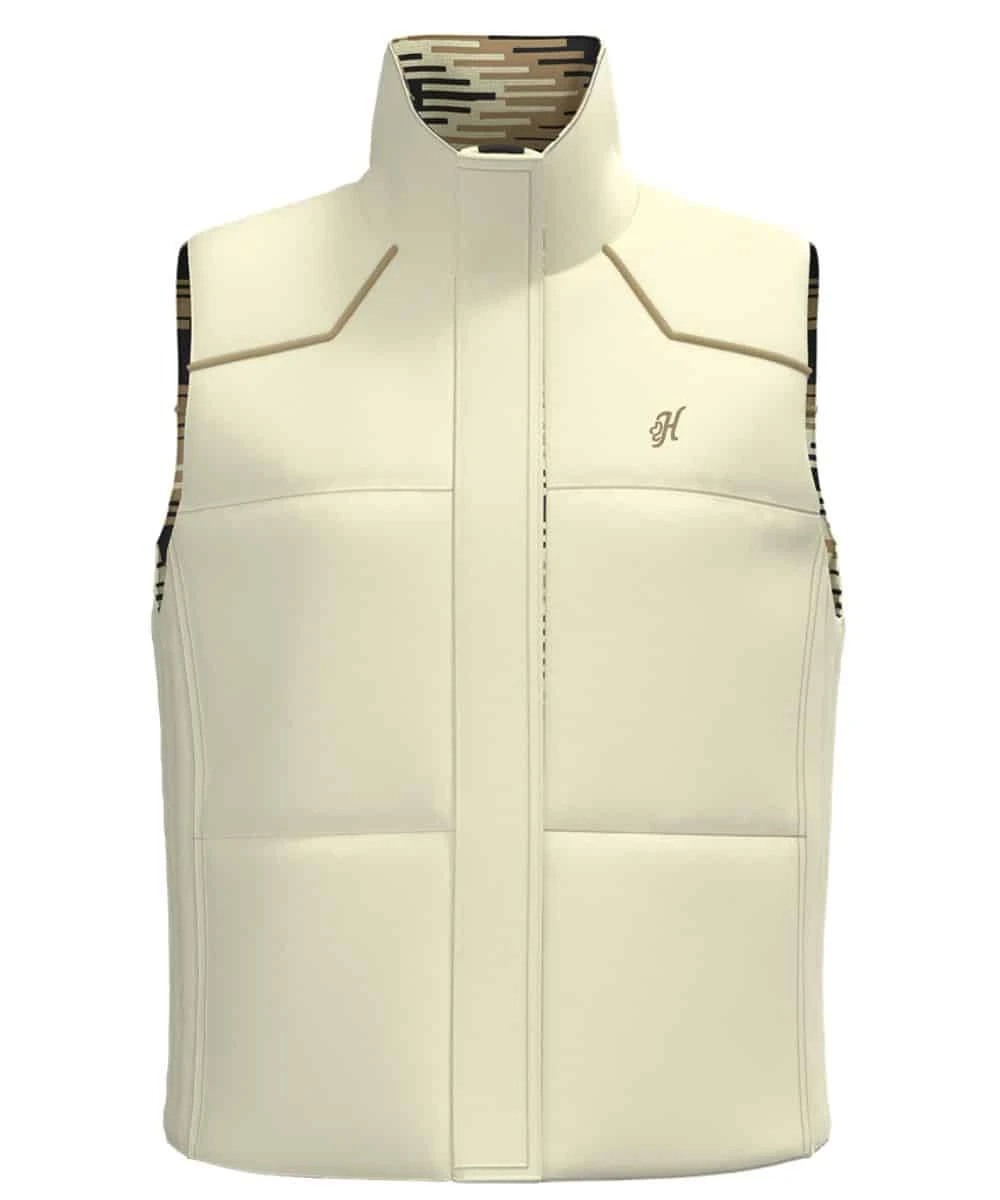 100% Polyester; Sleeveless Vest; Mock Collar; Front Snap Closure; Snap Closure Hand Pockets; Wind Resistant; Durable Water Resistant; Reversible Vest: Solid Cream With Logo Embroidery On Chest And Cream/Black Aztec Print With Hooey Mercantile Logo Patch At Hem; Color: Cream; Style #HV139CRBL