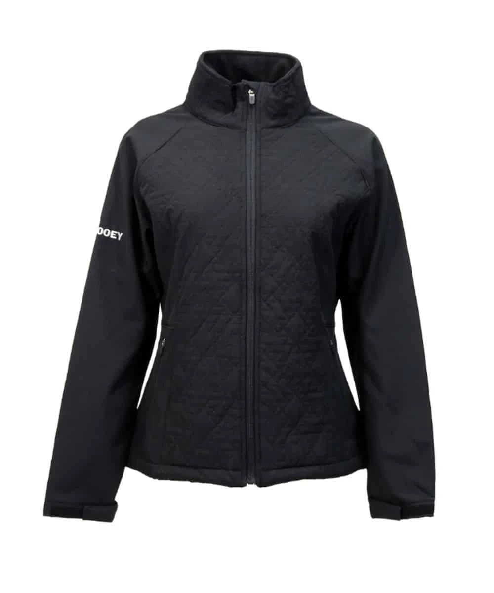 Quilted Soft Shell; Soft Fleece Interior; Long Sleeves; Mock Collar; Full Zip Closure; Logo Embroidery On Sleeve And Back; Zippered Hand Pockets; Hook And Loop Adjustable Cuffs; Hooey Ride Tight Adjustable Waistband; Wind And Waterproof Blocking; Color: Black; Style #HJ143BK