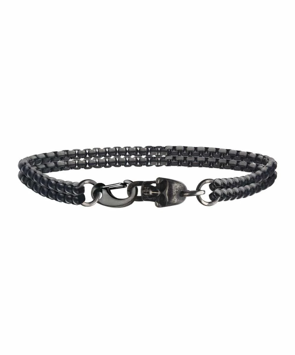 Stainless Steel; Classic Antiqued Chain Bracelet; Lobster Clasp Closure With Skull; 8.5″ Long; Style #BR0035