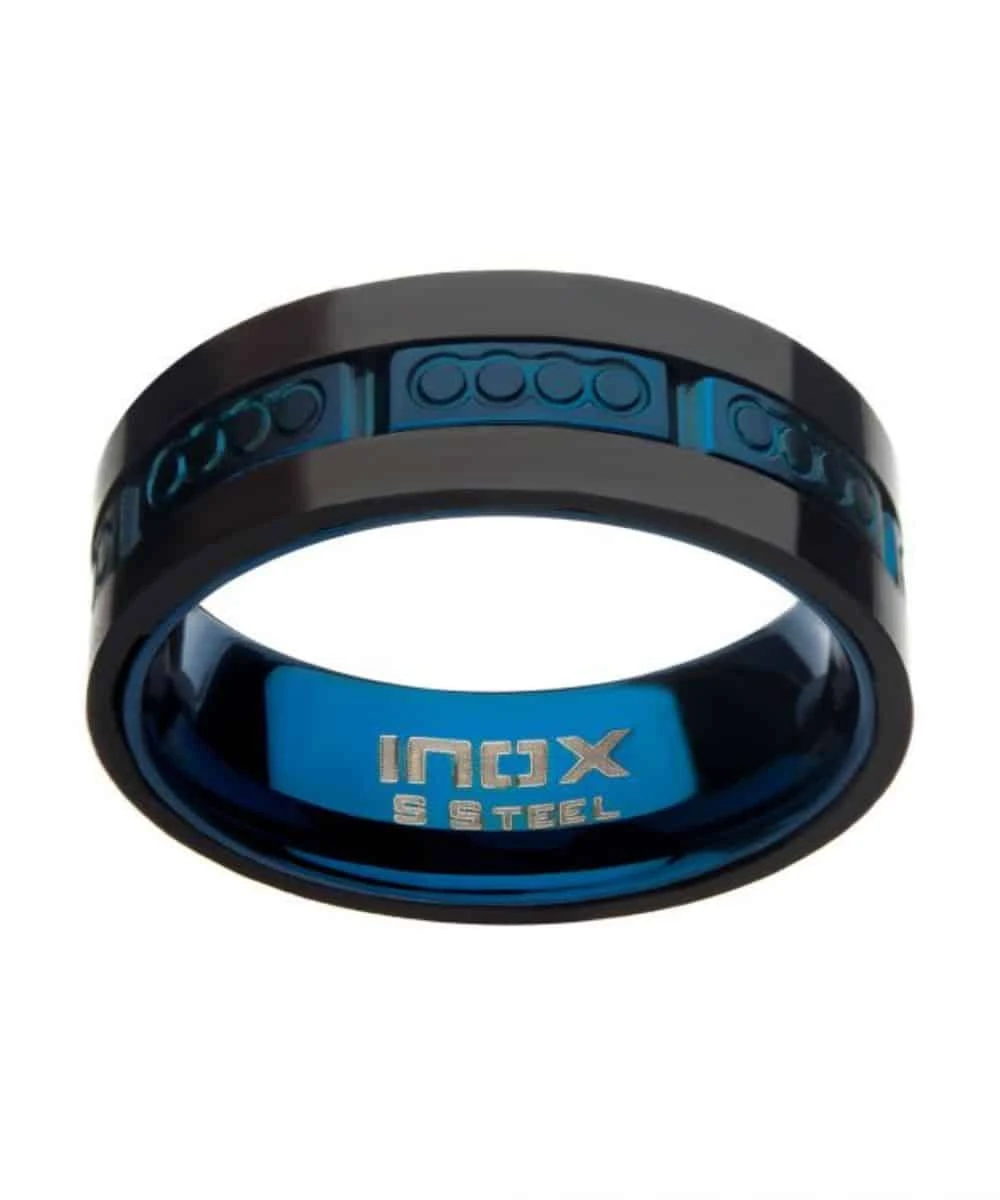 Blue IP/Stainless Steel; Matte Prussian Blue Carbon Fiber Band Ring; Contemporary Design; Style #FR079B