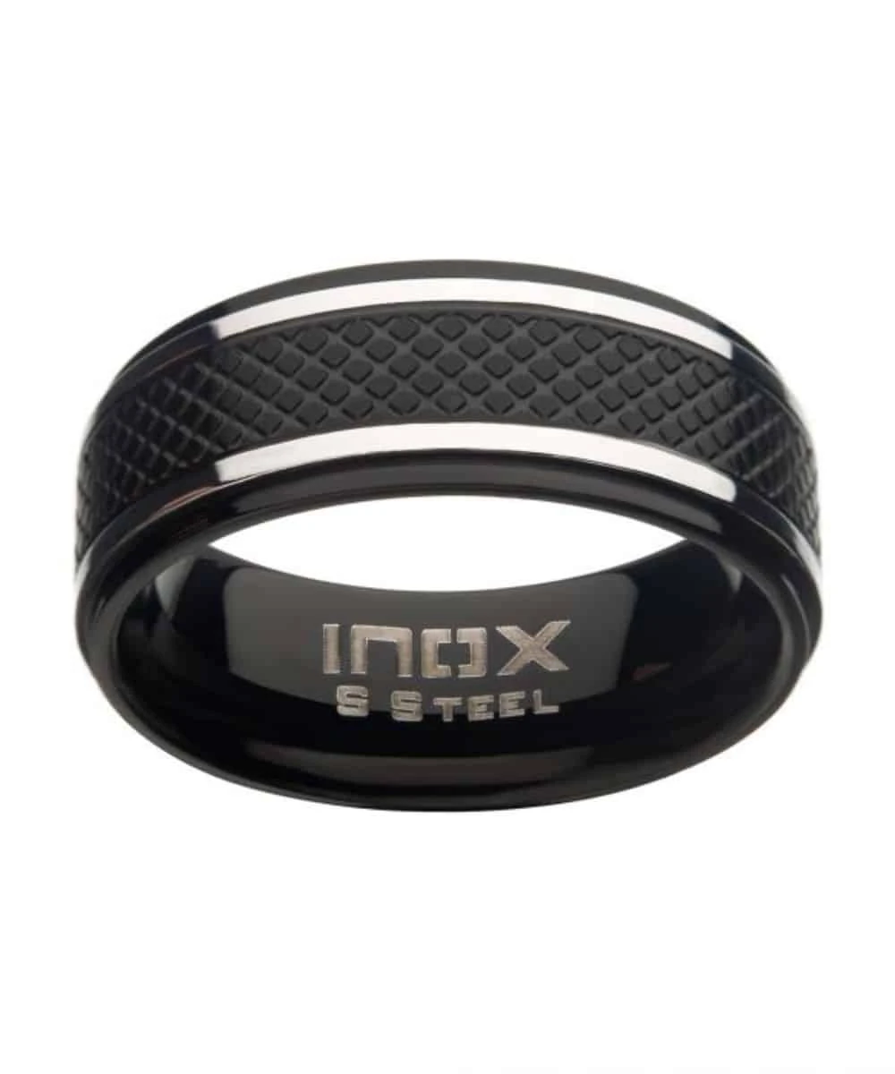 Stainless Steel Matte Black IP Ring; Quilt Pattern With Steel Rings; Contemporary Design; Style #FR117K