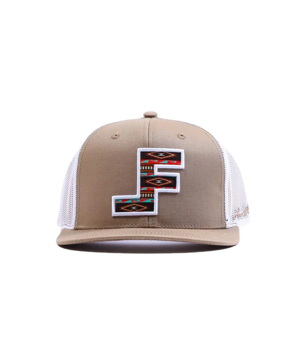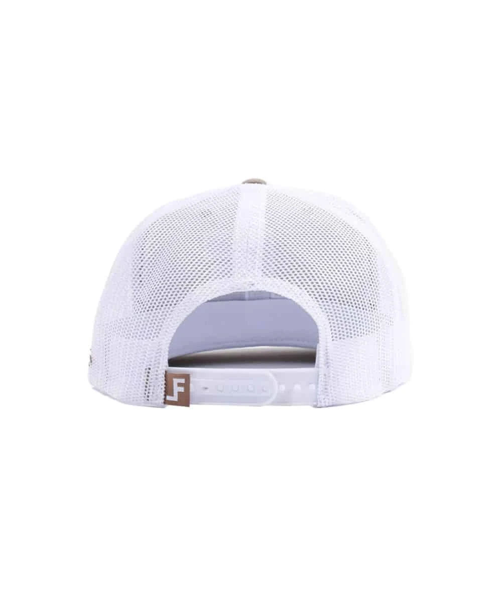 Tan Front And Bill; Flat Bill; Lane Frost Aztec Embroidered Logo On Front; White Mesh Sides And Back; Lane Frost Signature On Side; Snapback Closure; One Size Fits Most; Color: Tan/White; Style #LFB3010