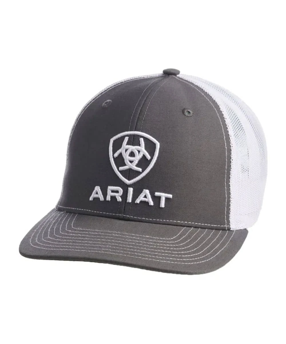 6 Panel Construction; Richardson 112 Fit; Grey Front And Bill; White Ariat Signature Logo Embroidery Centered On Front; White Mesh Sides And Back; Adjustable Snapback Closure; One Size Fits Most; Color: Grey/White; Style #A300003206