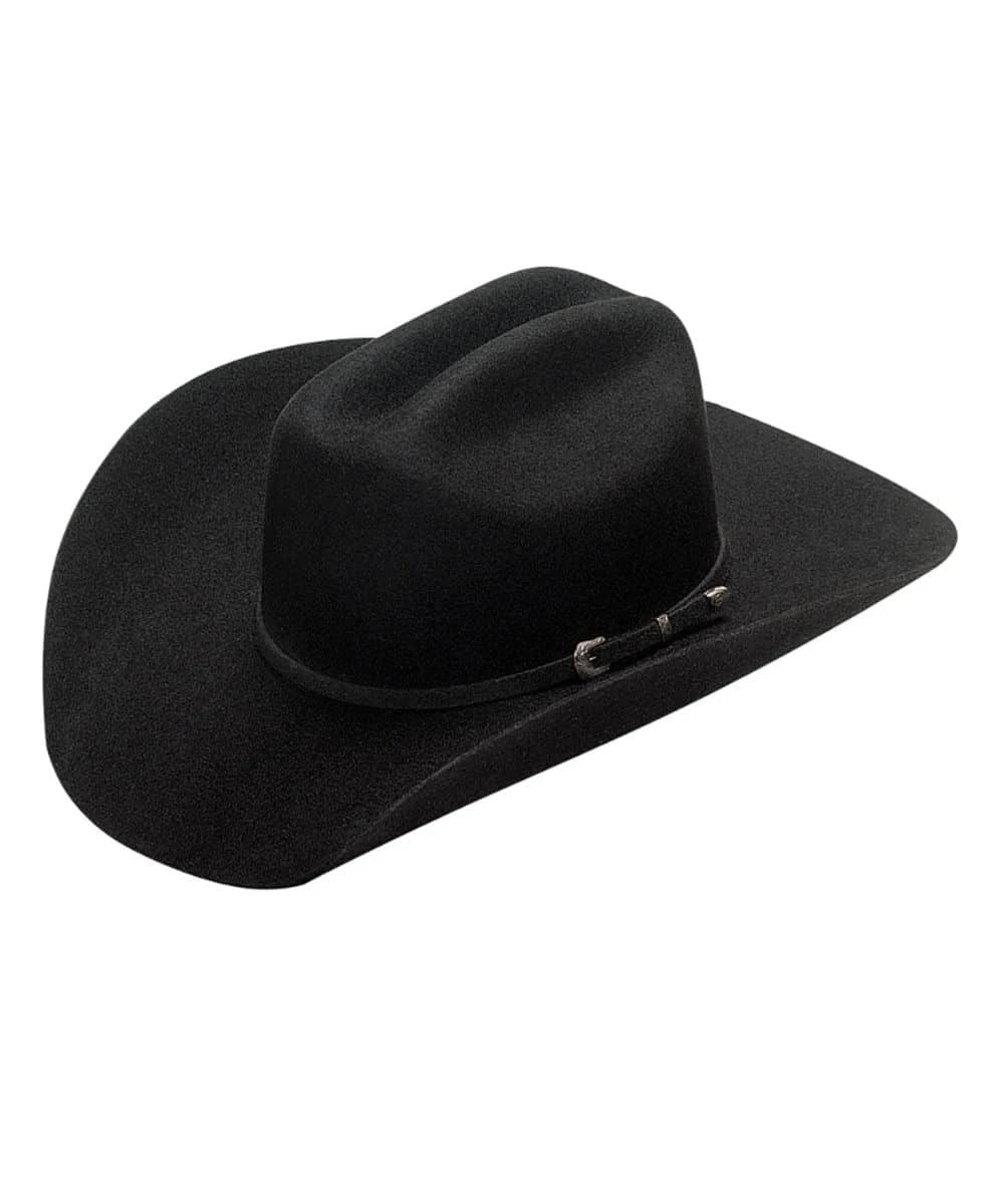 Handcrafted From Premium 2X Wool; 4 3/8″ Cattleman Crown; 4″ Brim; Matching Self Hat Band With 3 Piece Buckle And Tip Decoration; Color: Black; Style #T7101001