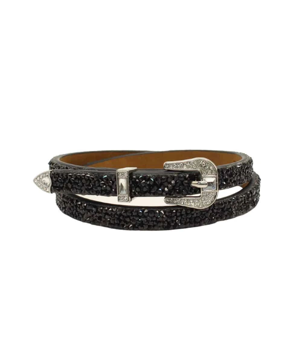 Black Rhinestones All Over Strap; Clear Rhinestones On 3 Piece Buckle; 3 Piece Buckle Closure; 27″ Long; Style #D740000001