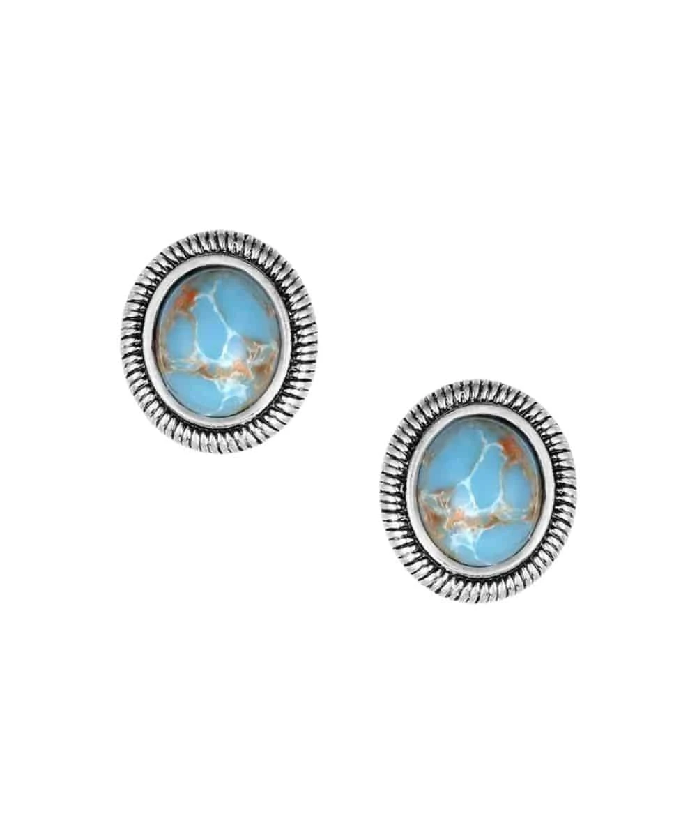 Silver Over Brass; Carefully Crafted Turquoise Stones Complemented By A Silver Tone Etched Edge; Stainless Steel Post Back Wires; Montana Armor To Prevent Tarnish; Measures Approximately: 0.4″ W x 0.5″ H x 0.3″ L; Style #ER6316