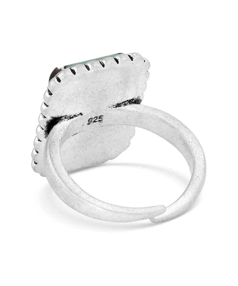 Silver Over Sterling Silver Base; Open Ring Featuring A Rectangular Shaped Stone Made Of Half Crafted Onyx And Half Crafted Turquoise With A Silver Border; Smooth Silver Band; Protective Coating; One Size Fits Most; Measures Approximately: 0.7″ W x 0.2″ H; Style #RG6012