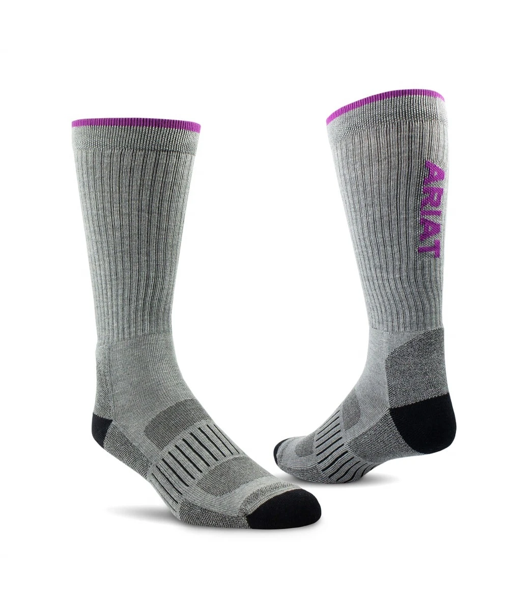 33% TENCEL/31% Nylon/23% Polyester/8% NanoGLIDE/5% Lycra Spandex; Crew Height; Unisex; 2 Pair;Â Comfortable Seamless Toe; NanoGLIDE High Tech Fiber Minimizes Friction For Less Heat And Chafing; Moisture Managing Super Soft Eco Friendly TENCEL Fibers; Reinforced Zones For Durability; Arch Support To Reduce Fatigue; Graduated Non Binding Top For Best Fit; Color: Gray And Purple; Size Medium And Fits Shoe Sizes 6-9.5; Style #2909
