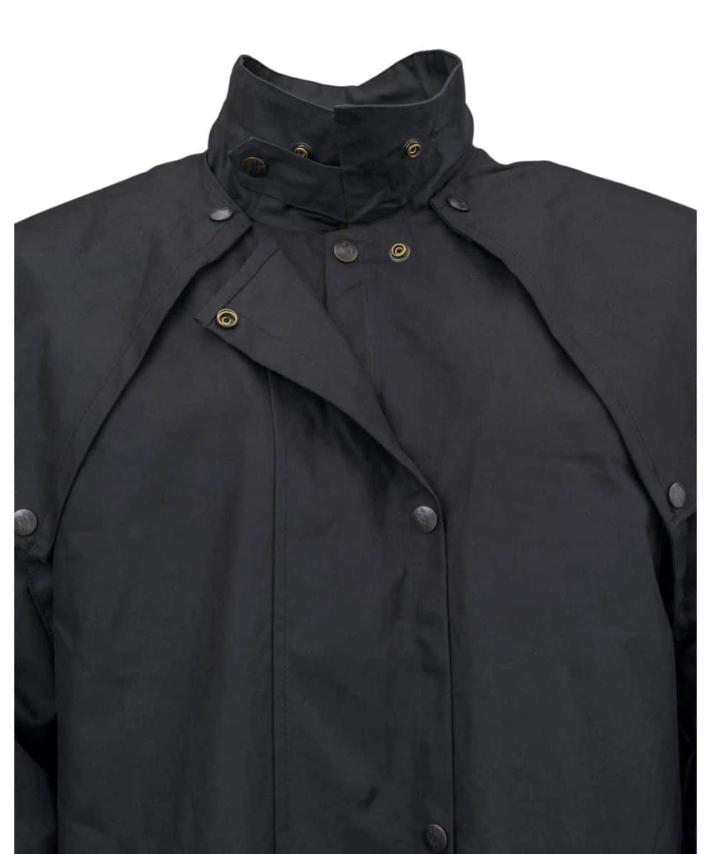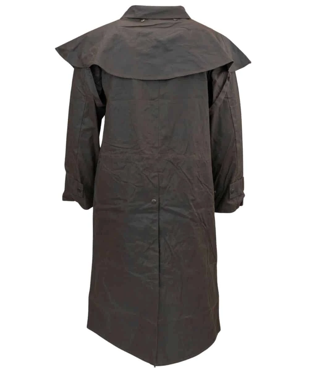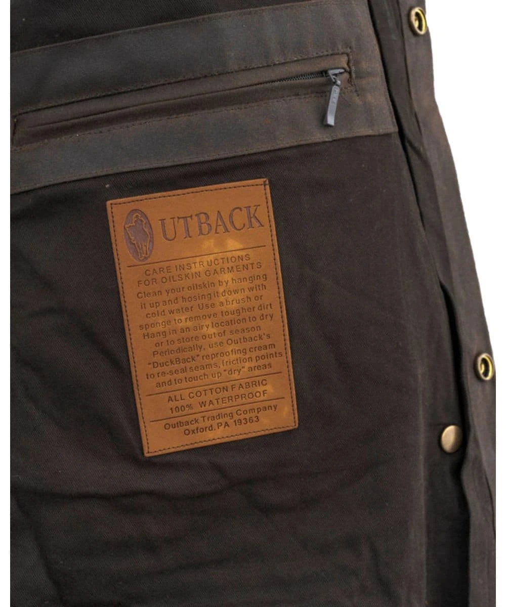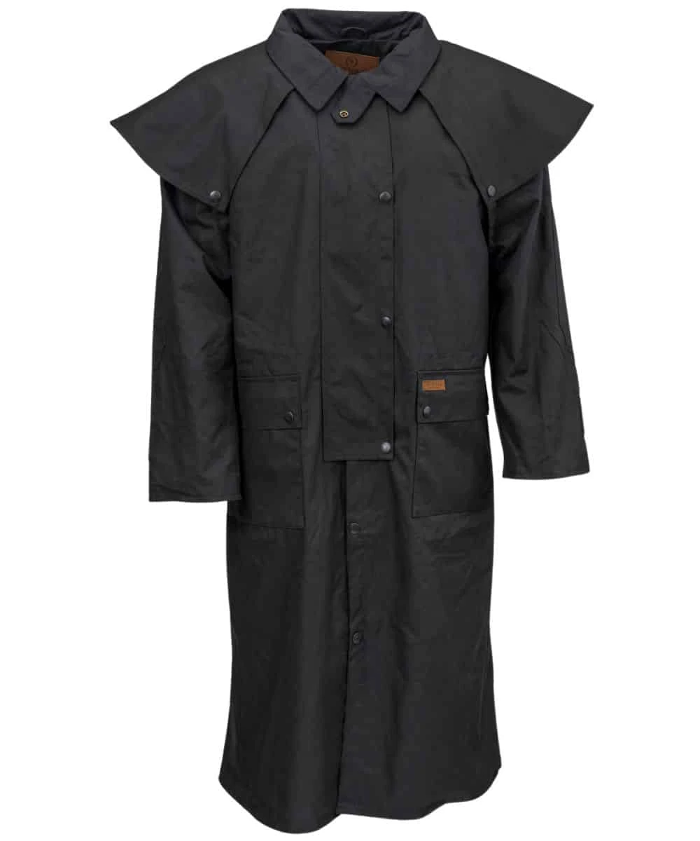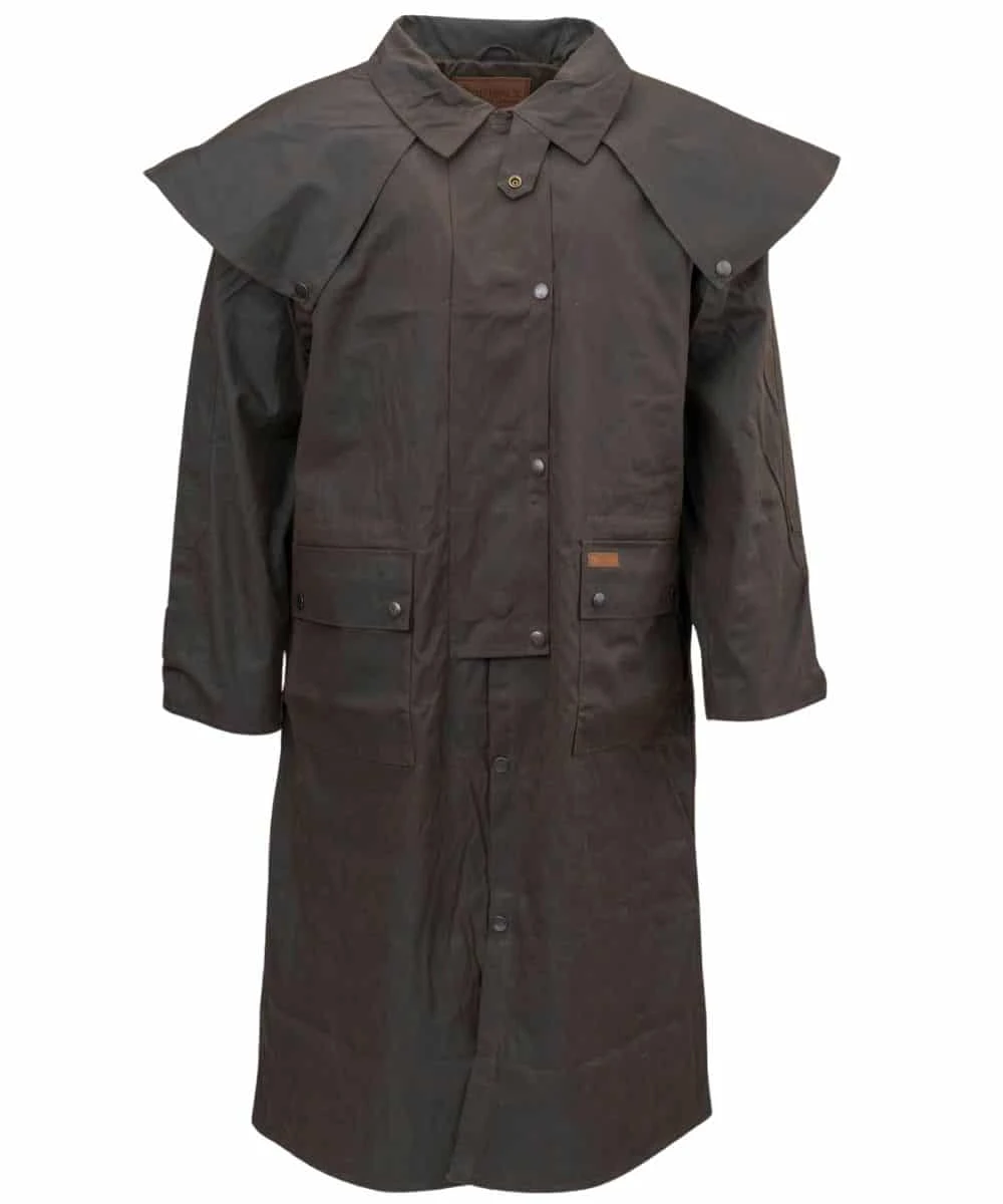 Shell: 12 Oz. 100% Cotton Oilskin; Lining: 100% Cotton; Long Sleeves; Taffeta Lined Sleeves; Throat Latch; Detachable Cape; Full-Length Dual-Snap Closure; Storm Flap; Dual Snap Flap Hand Pockets; Dual Entry Hip Pockets; Drawstring Waistband; Reinforced Elbow Patches; Snap Adjustable Cuffs; Adjustable Leg Straps; Rear Saddle Gusset; Inside Security Pocket; Waterproof And Breathable; Unisex Fit; Full-Length Slicker Made To Withstand All Climates; Style #2042