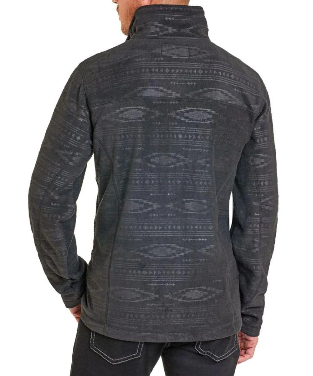 100% Polyester; Fleece Pullover; Long Sleeves; Mock Collar; 1/4 Zip Closure; Hand Pockets; Horizontal Aztec Embossed Stripes; Color: Black; Style #DM91C06184