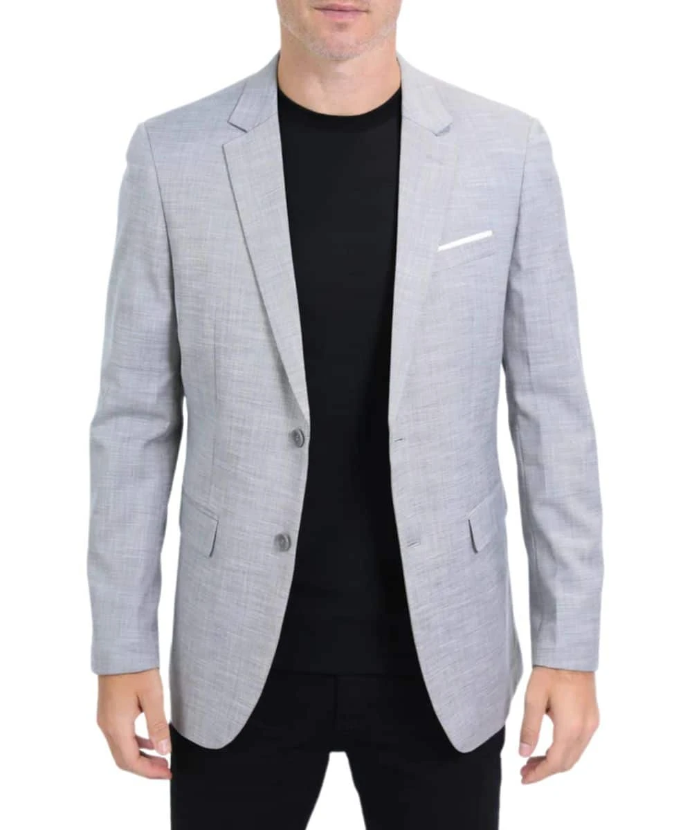 Crafted From Stretch Fabric For Comfort And Flexibility; Modern Fit; Long Sleeves; Spread Notched Collar; Two-Button Closure; Chest Pocket With A Fixed Contrasting Pocket Square; Two Faux Hand Pockets; Four Buttons On The Cuffs Allow For Easy Adjustment And Customization; Internal Lining With The Same Design As The Faux Pocket Square; Internal Pocket For Storing Small Essentials; Color: Grey; Style #BLZ10536
