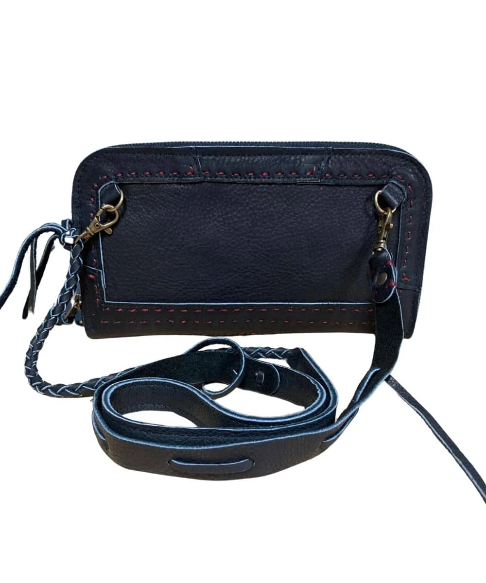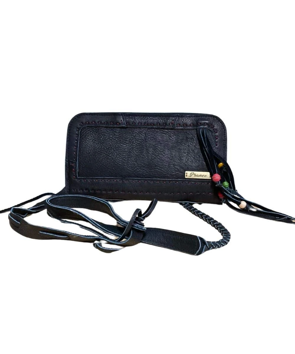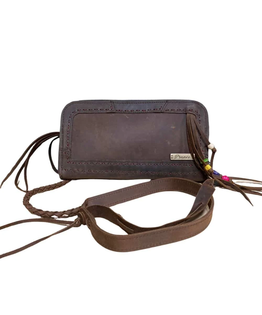 Genuine Leather Large Wallet/Handbag From The Classic Collection; 50″ Adjustable/Removable Woven Leather Shoulder Strap; Decorative Red Stitching; Leather Tassel With Bead Accents; Zipper Closure; 100% Leather Lining; Interior Zipper Coin Pouch, Cash Slot And 6 Credit Card Slots; Measures Approximately: 10″ L x 1″ W x 5.5″ H; Style #CLASSIC-PRESTON