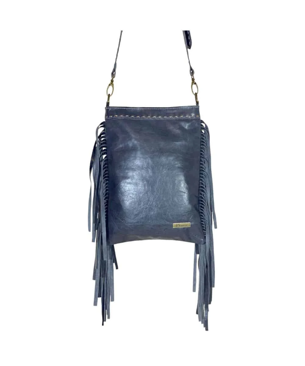 Genuine Leather Handmade Handbag From The Austin Collection; Zipper Closure; 100% Cotton Lining; Interior Pocket; Adjustable Leather Strap; Side Fringe; Measures Approximately: 9″ L x 1″ W x 12″ H; Solid Print; Style #AUSTIN-SALINA