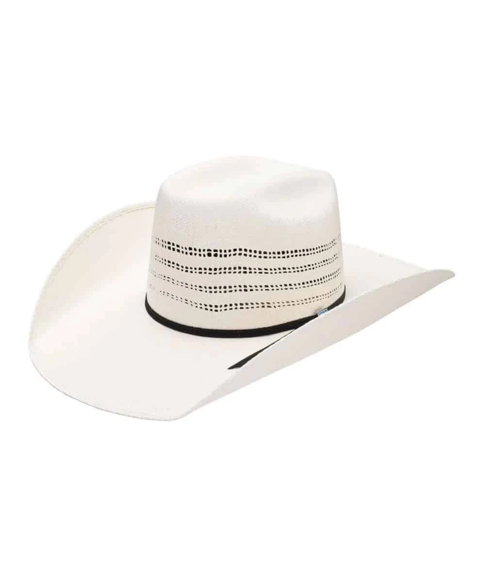 Cody Johnson Collection; Bangora Straw Cowboy Hat; 4 1/4″ Brim; 4 1/2″ Medium Brick Crown With All-Around Ventilation; Black Ribbon Hat Band With Cody Johnson’s Logo Pin; Dri-Lex Sweatband; Color: Natural; Style #RSDRXL-CJ44