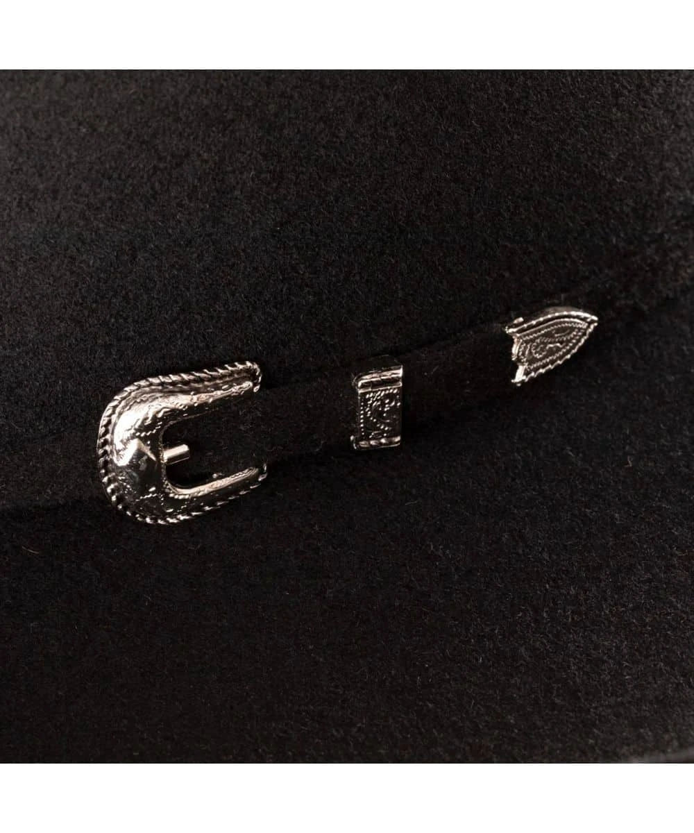 Tuff Hedeman Collection; 3X Wool Construction; 4 1/4″ Brim; Rounded Brick 5 1/4″ Tall Rounded Brick Crown; Matching Leather Hatband With Three Piece Silver Tone Buckle; Style #RWPYWD-9042