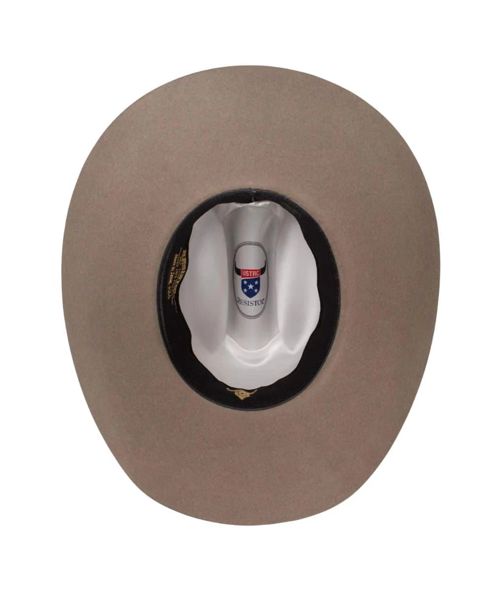 6X Felt Construction; 4 1/4″ Brim; 4 5/8″ Cattleman Crown; Matching Stone Hat Band With USTRC (United States Team Roping Championship) Silver Tone 3 Piece Buckle; Rodeo-Ready Leather Dri-Lex Sweatband; Satin Lining; Made In Texas; Color: Stone; Style #RFUSTR-7242