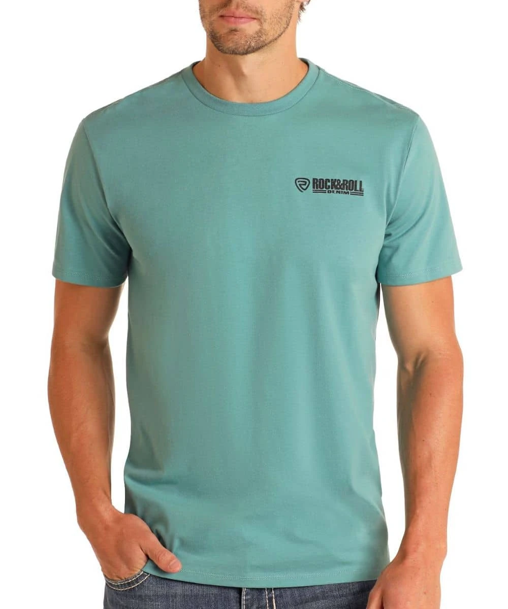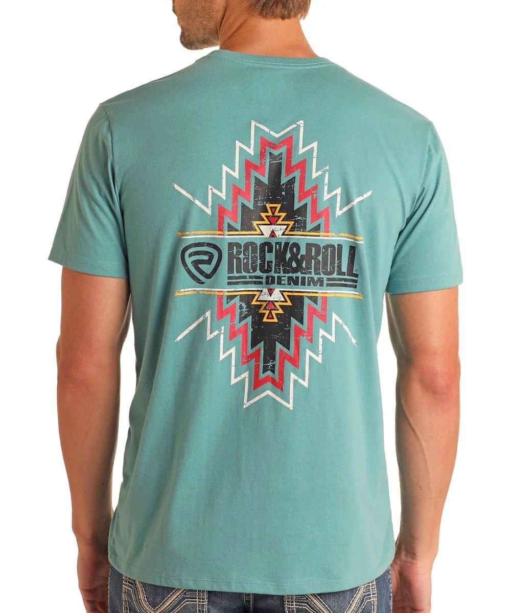 60% Cotton/40% Polyester; Short Sleeves; Crew Neck; Small Screen Printed Logo On Chest; Large Screen Printed Logo On Back With Aztec Graphic; Color: Teal; Style #BU21T06066