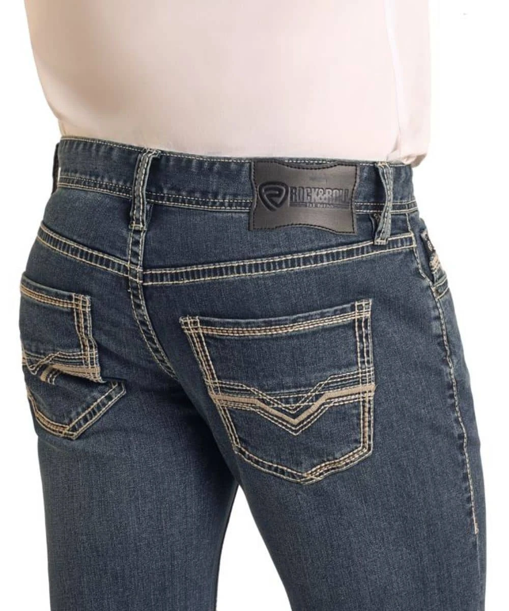 99% Cotton/1% Spandex; ReFlex Denim; Zip Fly With Button Closure; Five Pocket Styling; Whisker And Hand Sanding Details; Ladder Stitch Embroidered Back Pockets; Straight Leg; Color: Dark Vintage; Style #BM1PD06129