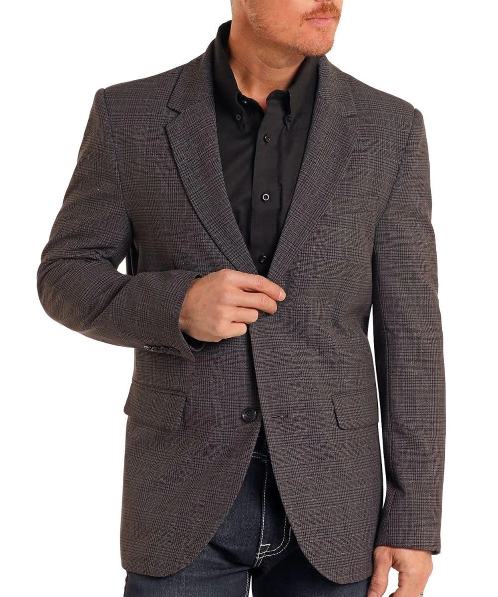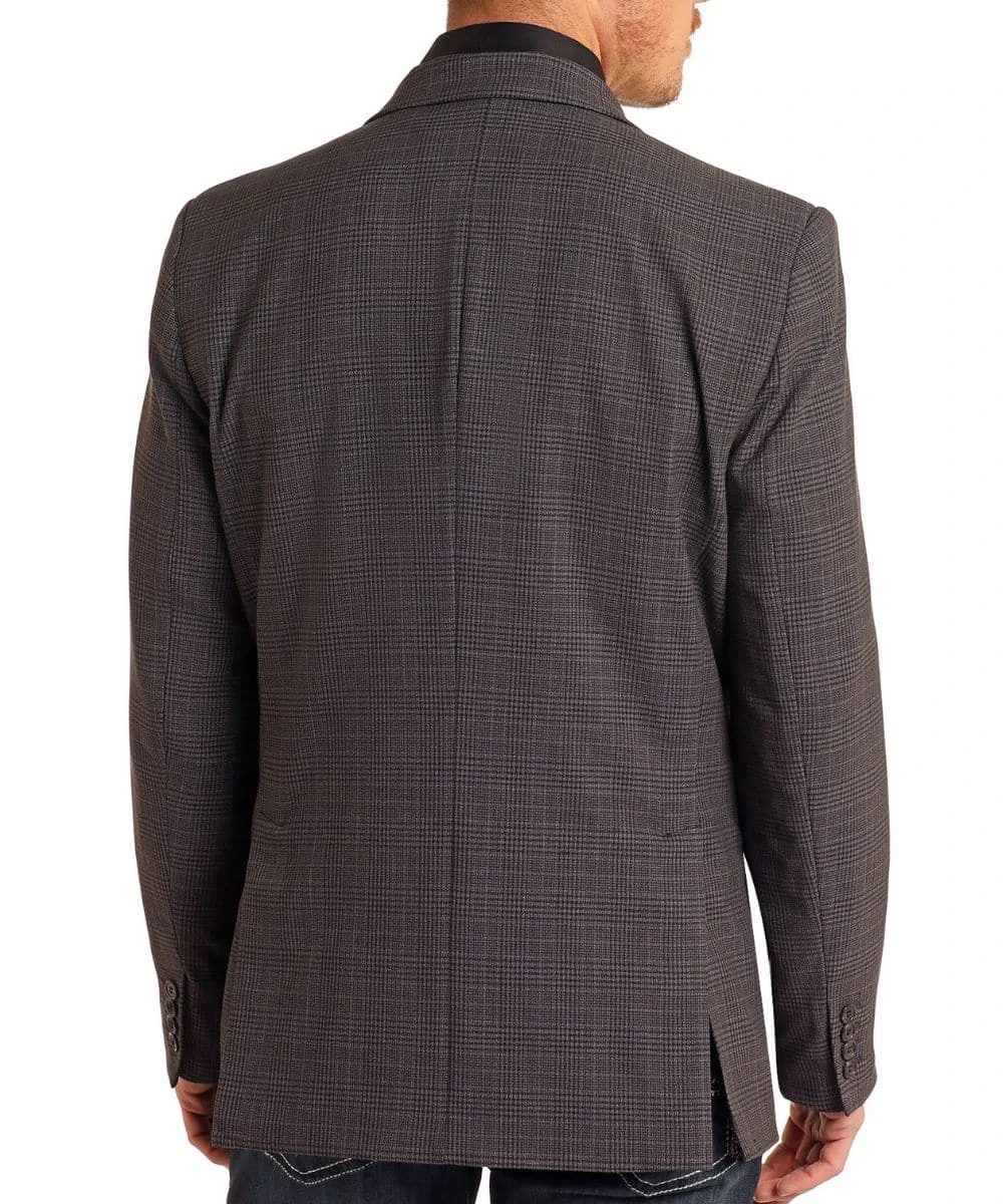 86% Polyester/12% Rayon/2% Spandex; Long Sleeves; Spread Notched Collar; 2-Button Front Closure; Slip Chest Pocket; Flap Hand Pockets; 2 Interior Pockets; Lined Interior; Plaid Print; Color: Black; Style #BM96C05505