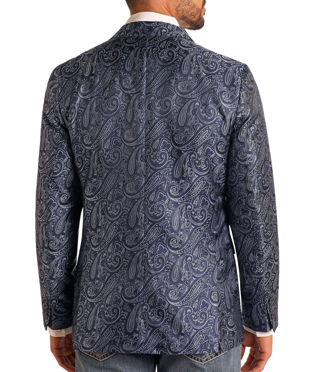100% Polyester; Long Sleeves; Spread Notched Collar; 2-Button Closure; Slip Chest Pocket; Flap Hand Pockets; Paisley Jacquard Print; Color: Indigo; Style #BM96C06054