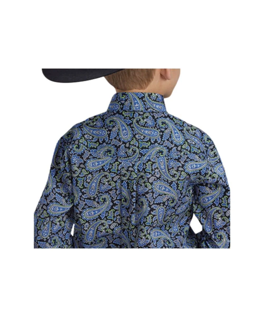 100% Cotton; Long Sleeves; Button Down Collar, Placket, And Cuffs; Black Buttons; Single Point Button-Through Flap Chest Pockets With Logo Embroidery; Single Point Back Yoke With Pleat And Locker Loop; Cobalt Paisley Print; Color: Blue; Style #03-030-0325-1010