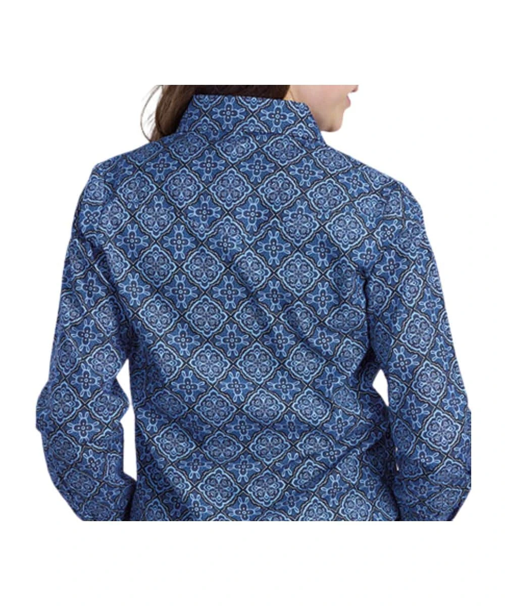 100% Cotton; Long Sleeves; Spread Collar; Snap Front Placket And Cuffs; Black Pearl Snaps; Single Point Snap Flap Chest Pockets With Logo Embroidery; Single Point Western Yokes; Saphire Ornamental Geometric Print; Color: Blue; Style #97168